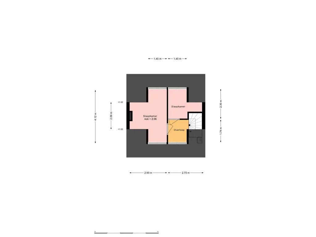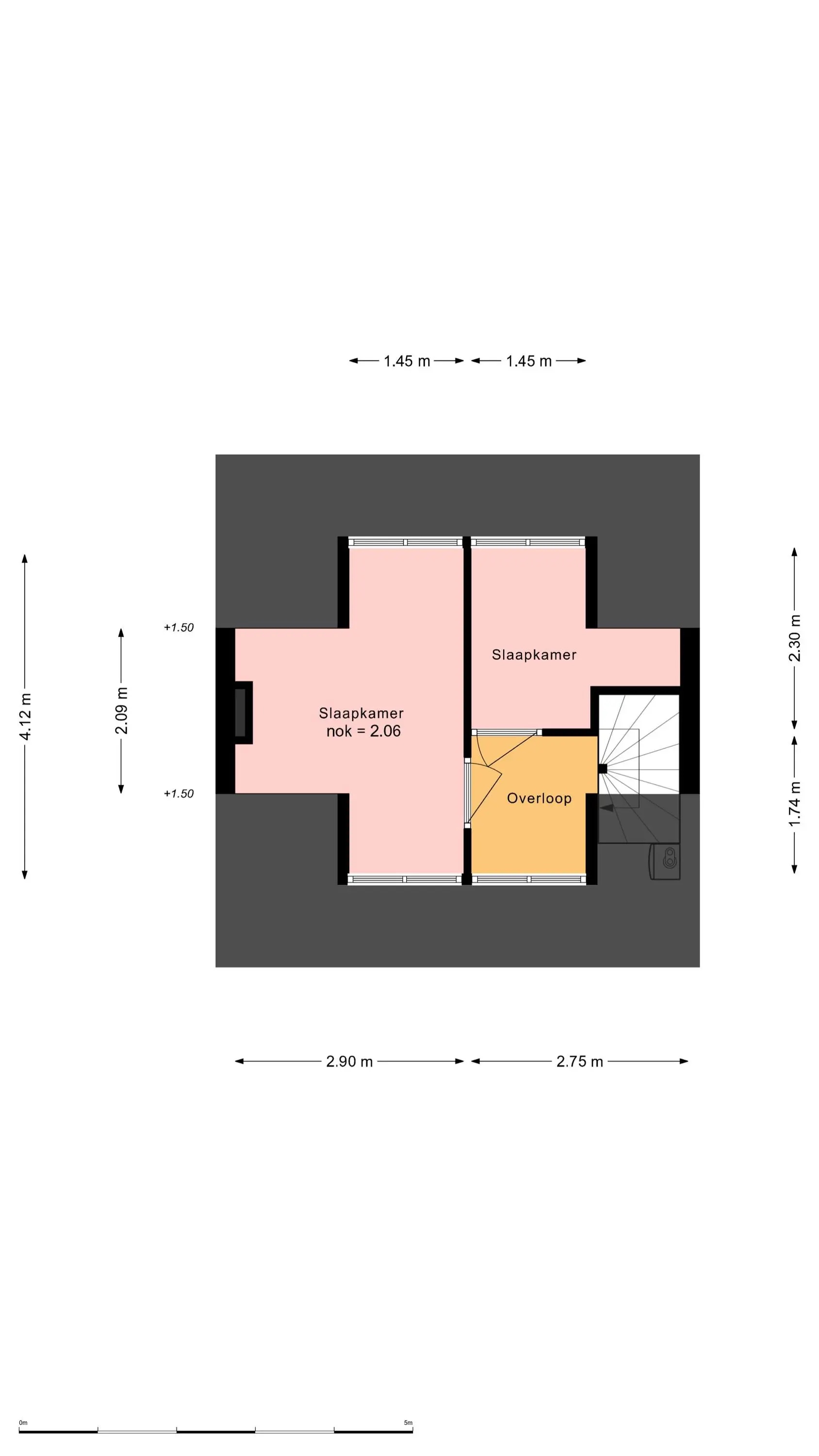 1e verdieping: Overloop met bergruimte/CV opstelling, slaapkamer I: