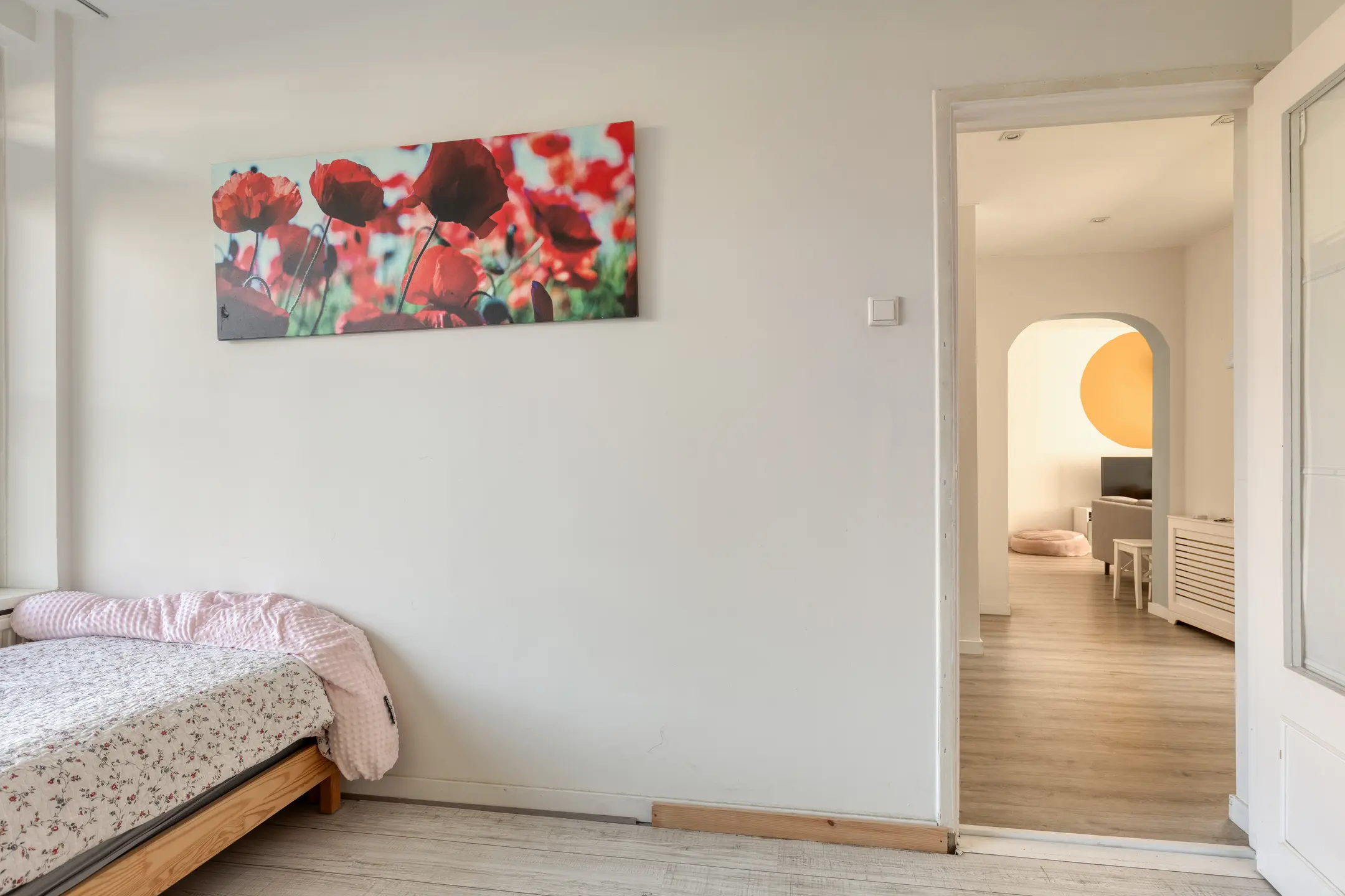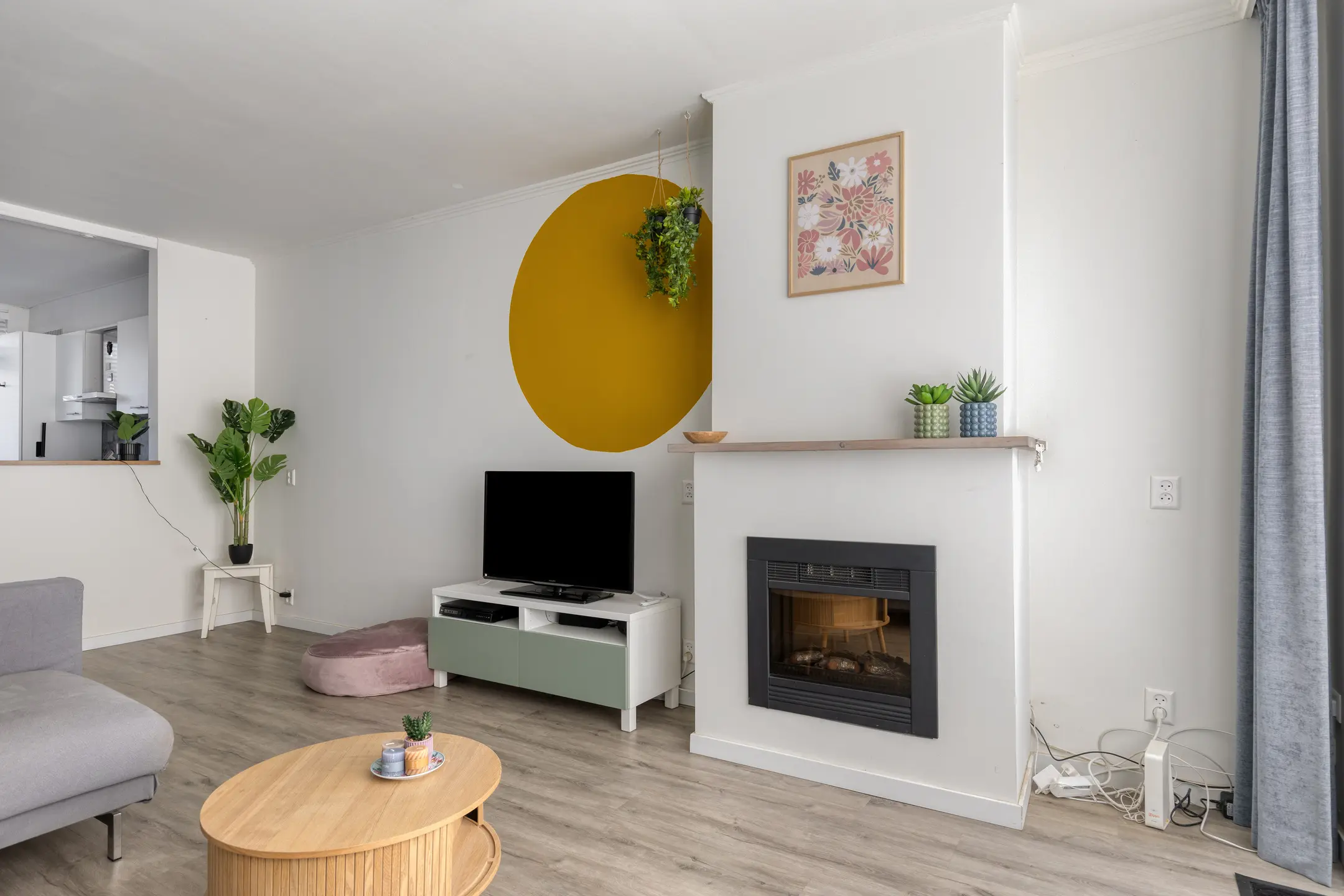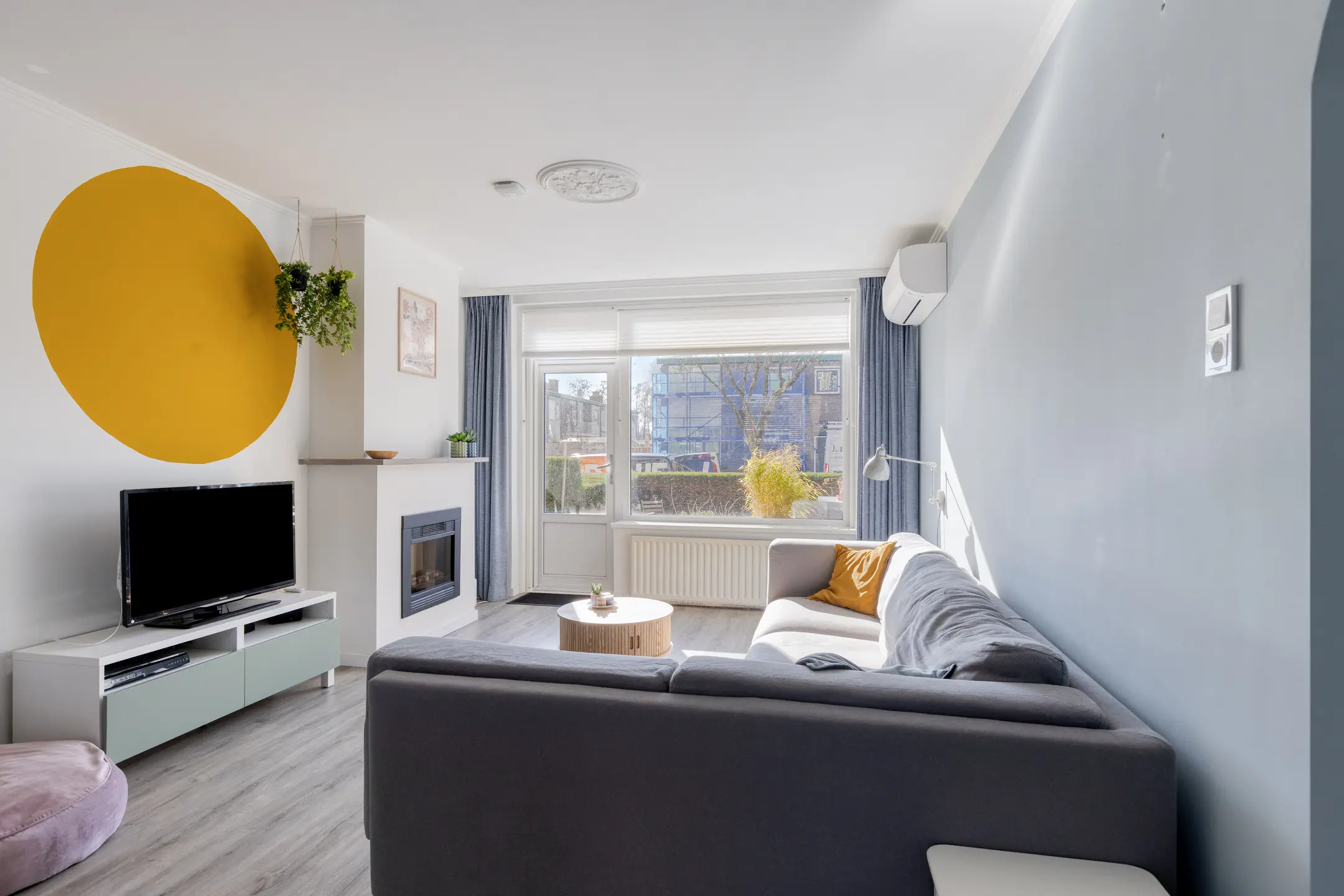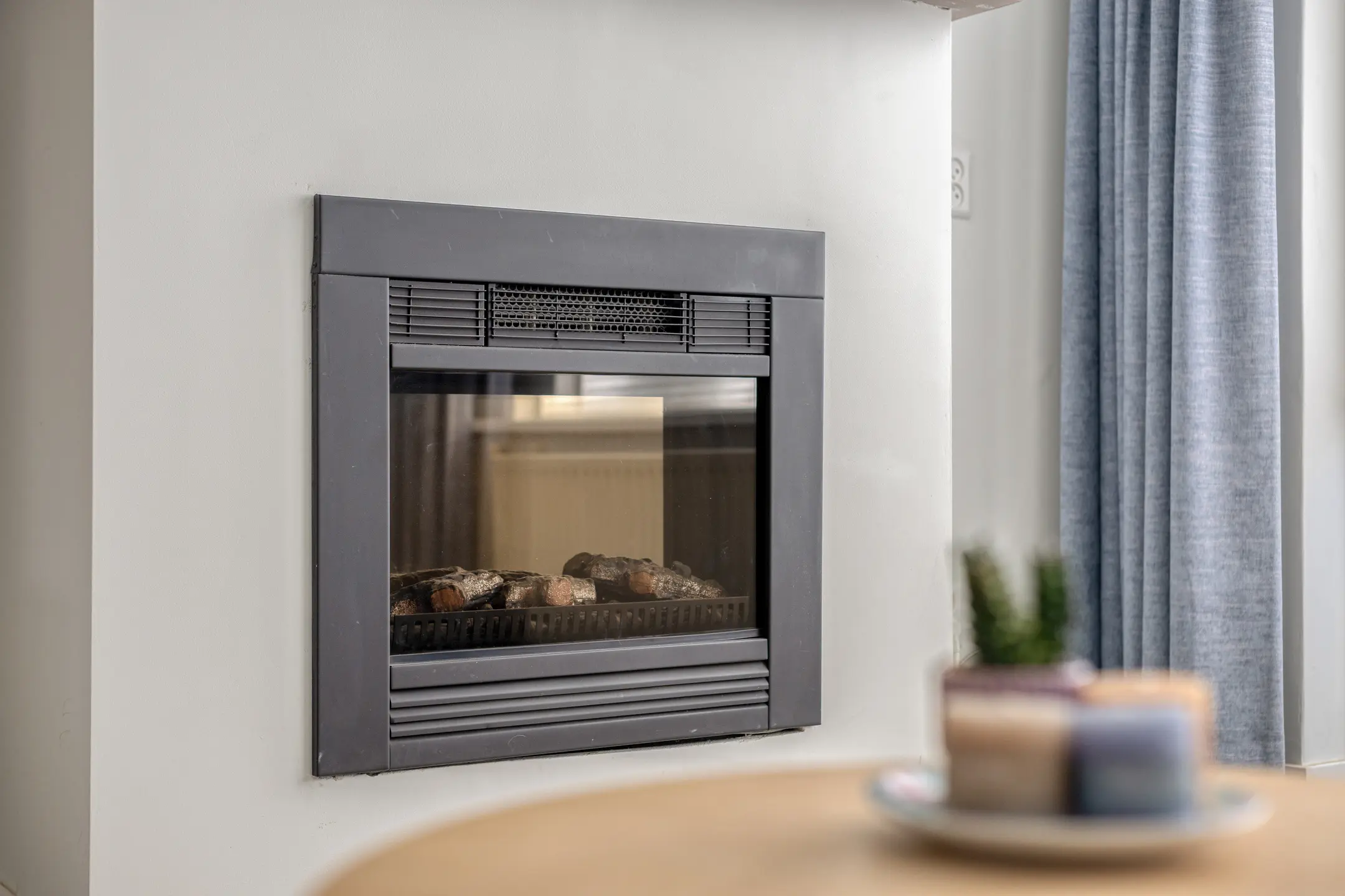 Binnen valt direct het eigentijdse en verzorgde interieur op. De woonkamer is warm en uitnodigend, met comfortabele vloerverwarming en een stijlvolle elektrische sierhaard die zorgt voor een knusse ambiance. Via de deur stap je zo de tuin in – een verlengstuk van je leefruimte in de zonnige maanden.