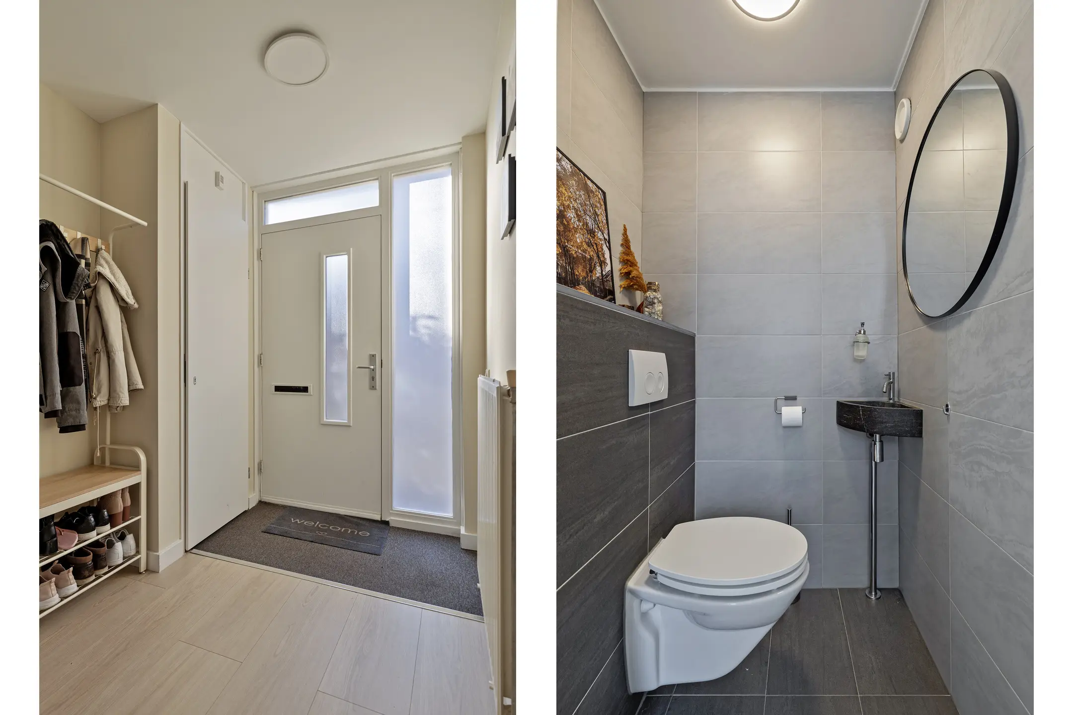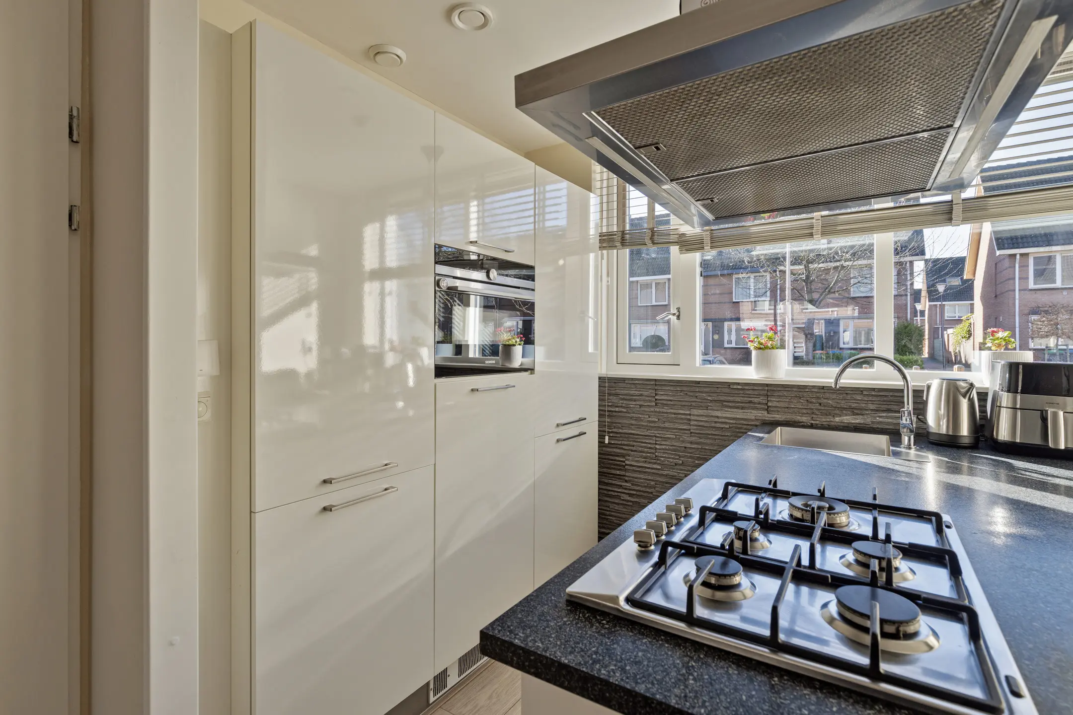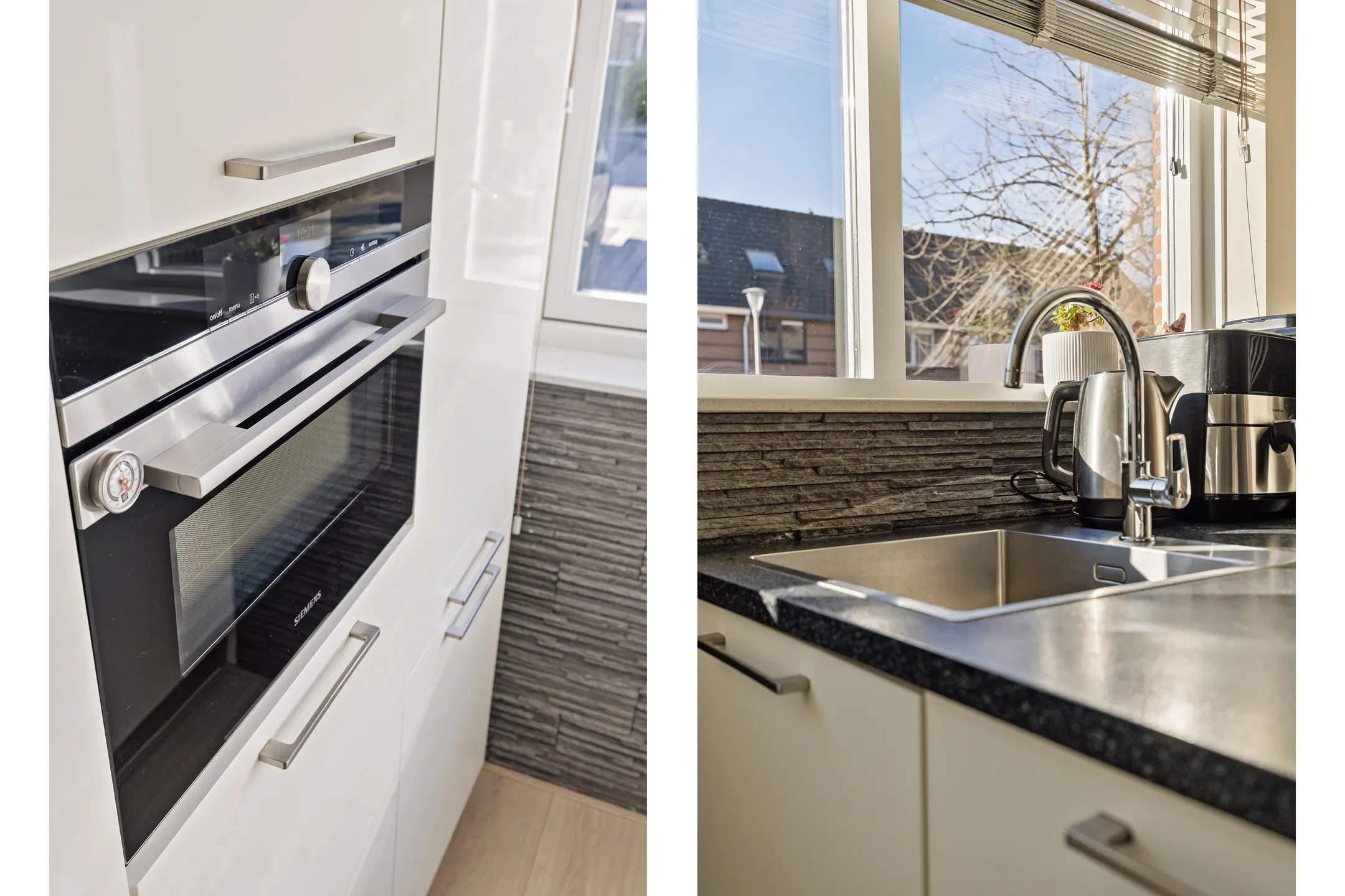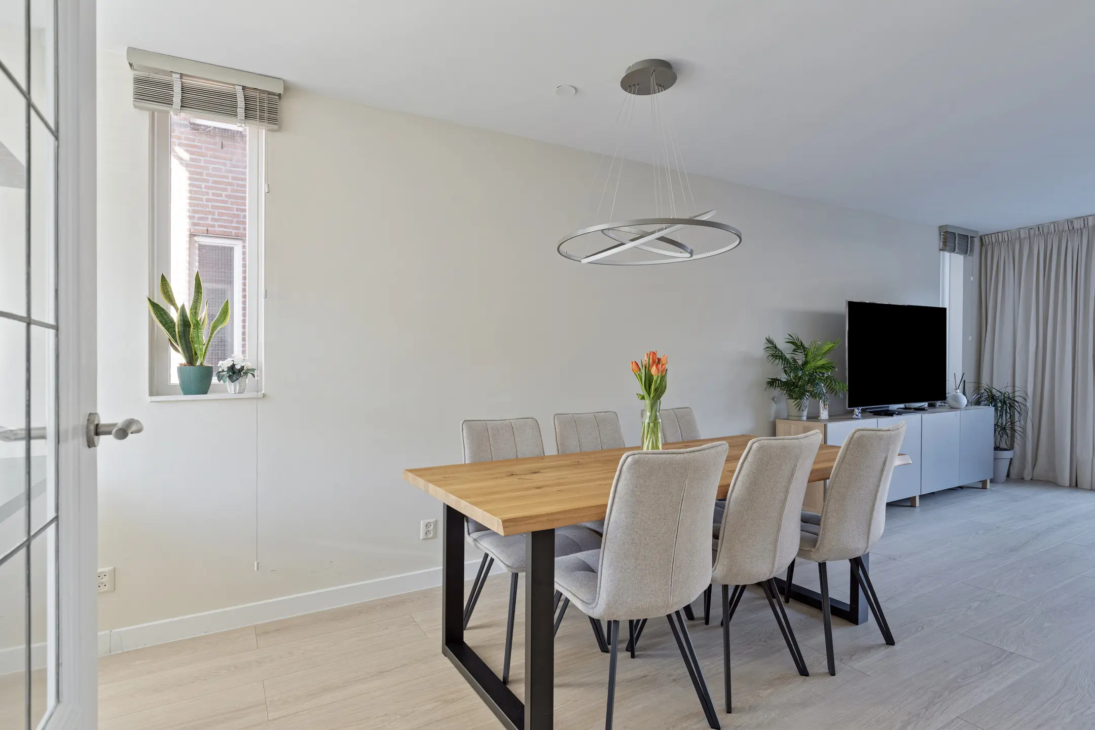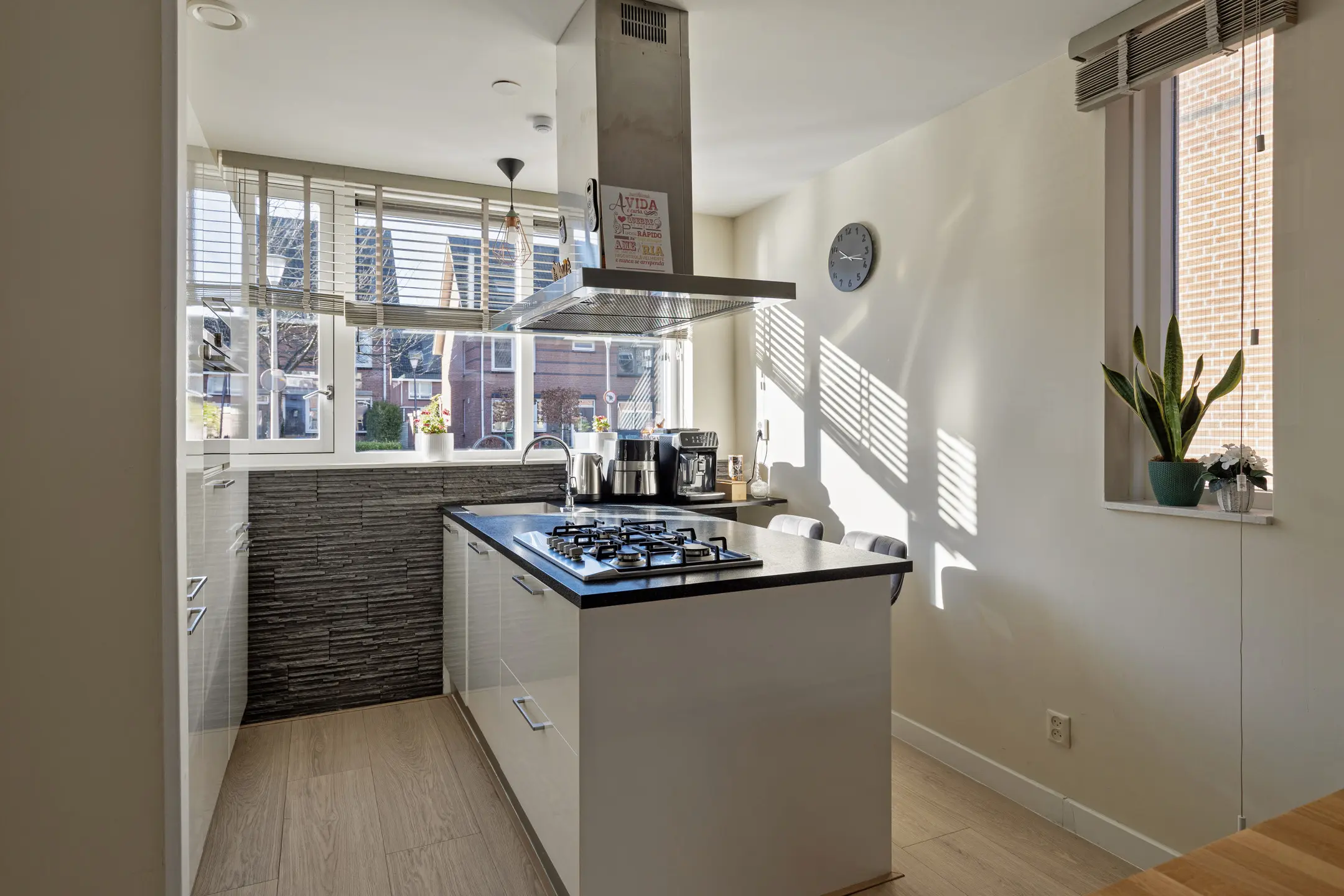 De woning is in de loop der jaren gemoderniseerd en biedt een eigentijdse woonbeleving met veel ruimte en licht. Dankzij de uitbouw aan de achterzijde is er een royale leefruimte ontstaan waar wonen, koken en eten op natuurlijke wijze samenkomen. De moderne keuken is praktisch ingericht en voorzien van hedendaagse apparatuur, terwijl het stijlvolle toilet comfort en rust uitstraalt. Onder de trap bevindt zich een opslagruimte voorzien van planken.