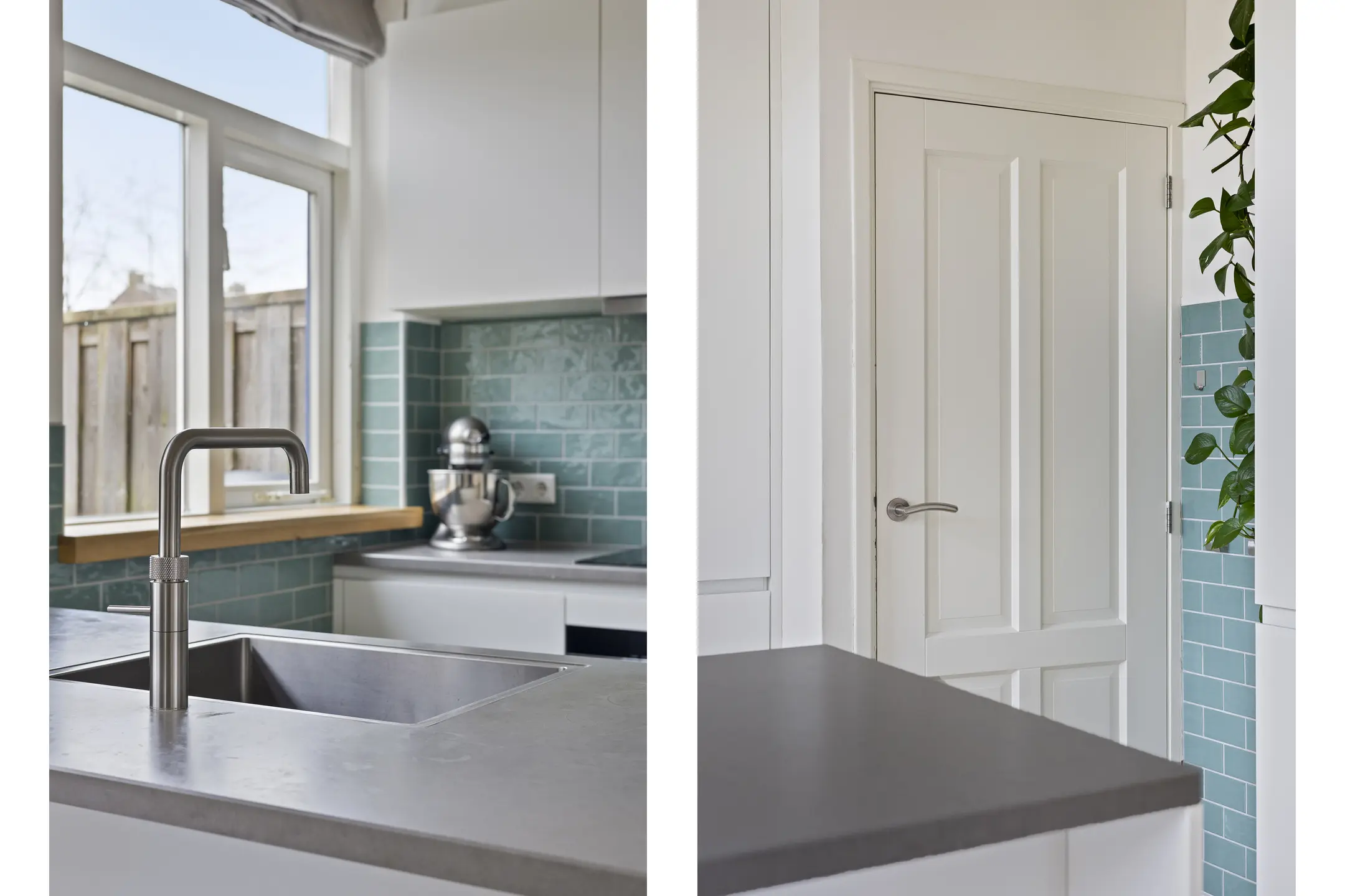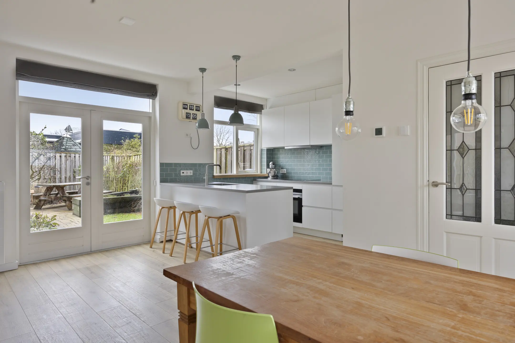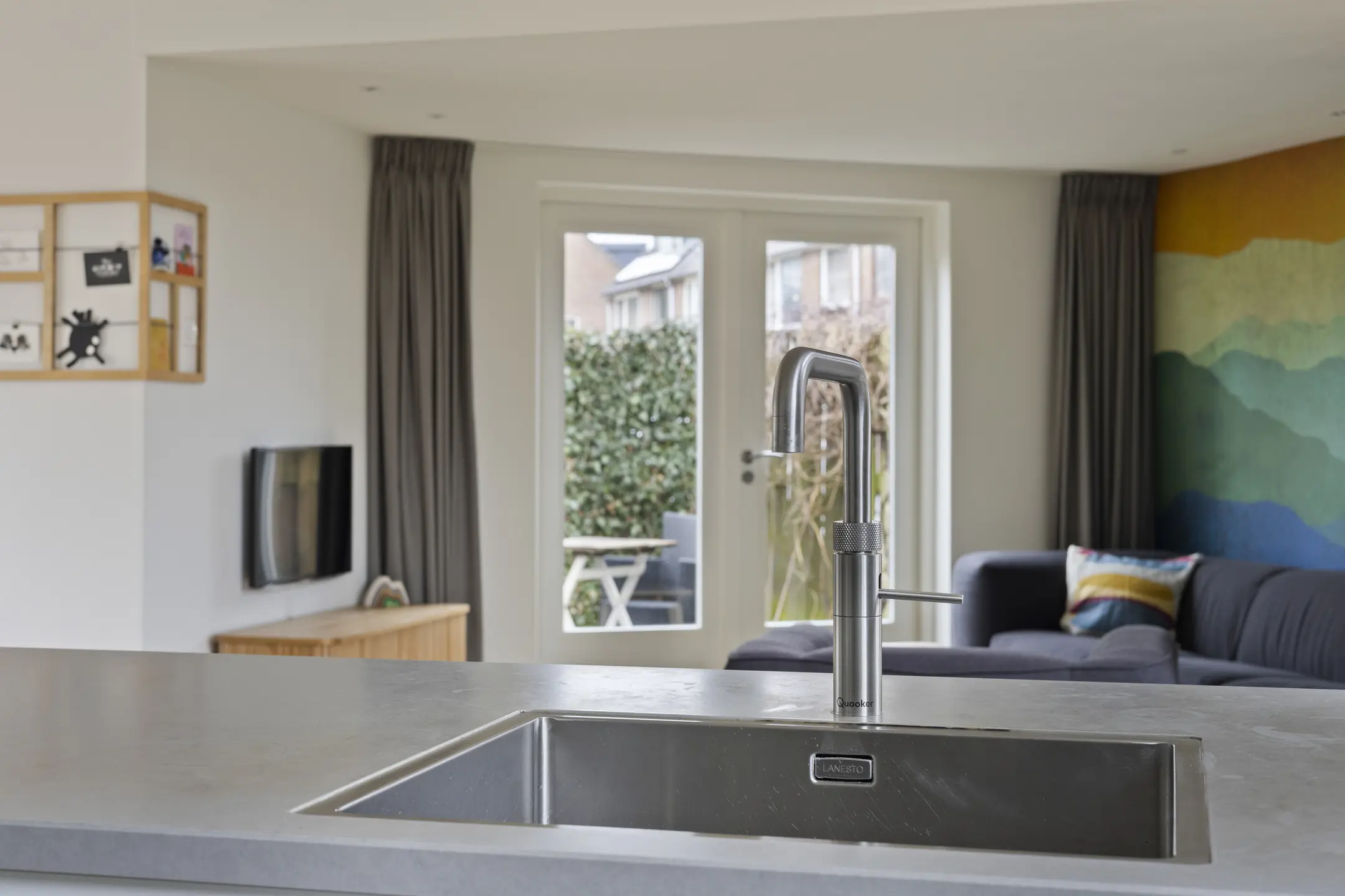 Begane grond: de bijzonder ruime woonkamer is licht door de vele ramen en heeft openslaande deuren naar de achtertuin én openslaande deuren naar de knusse zijtuin/patio. De lichte moderne open keuken beschikt over inbouwapparatuur, voldoende werkruimte, een leuke (eet-)bar en een verdiepte kelderkast. Hal/entree met toilet en meterkast.