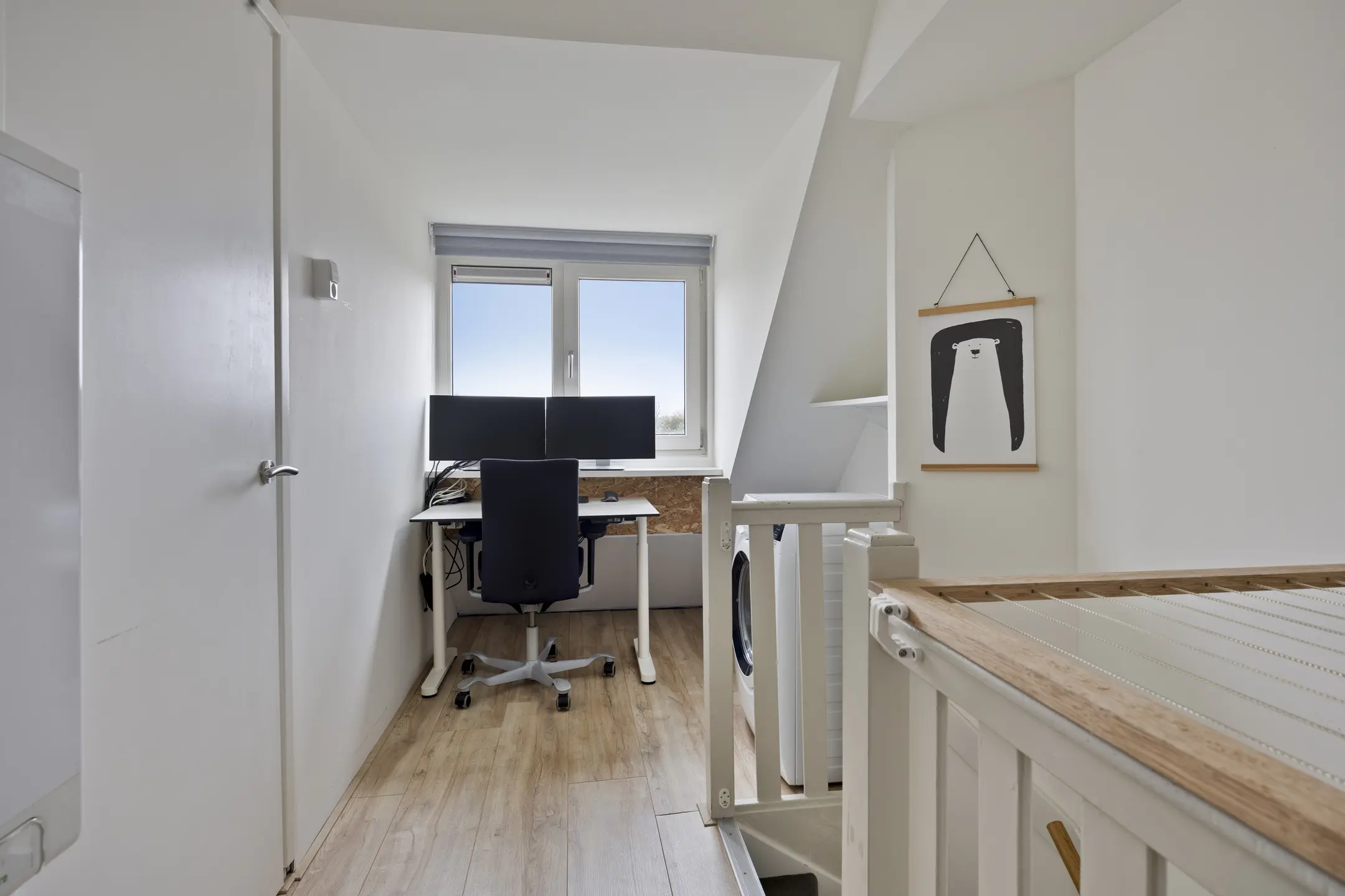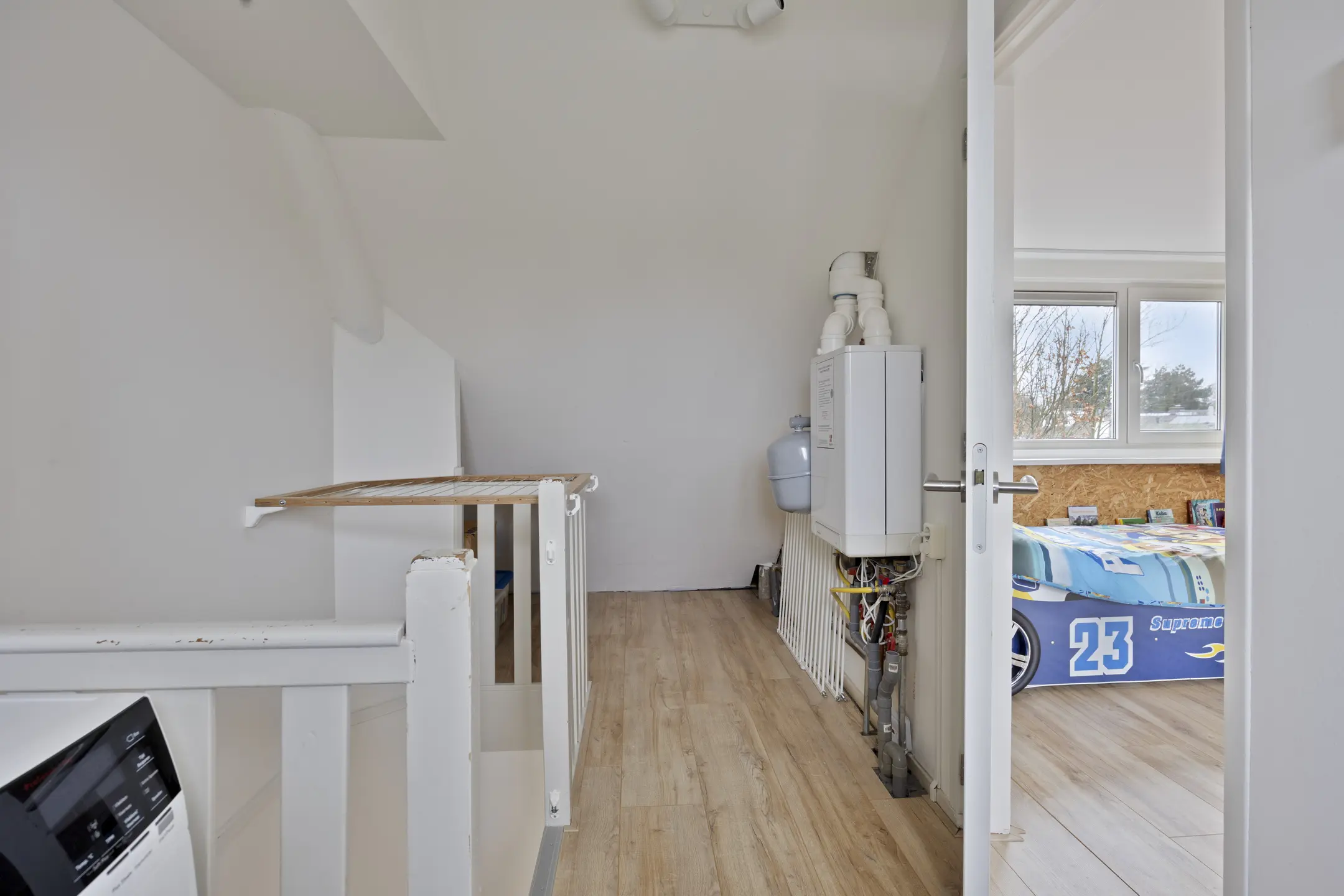 2e verdieping: ruime slaapkamer met twee dakkapellen, overloop met werk-/hobbyhoek, wasmachineaansluiting en CV-opstelling. Bergruimte.