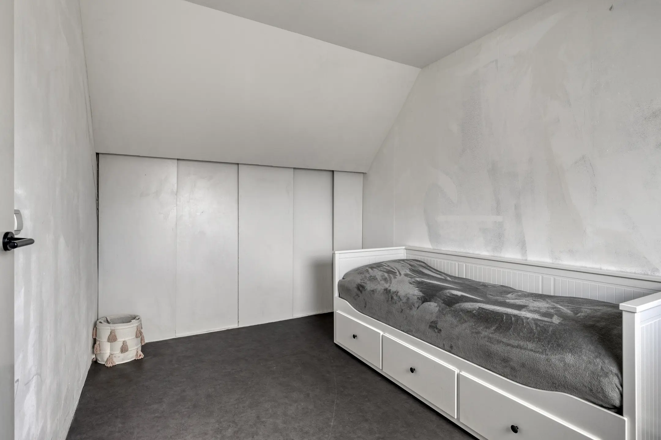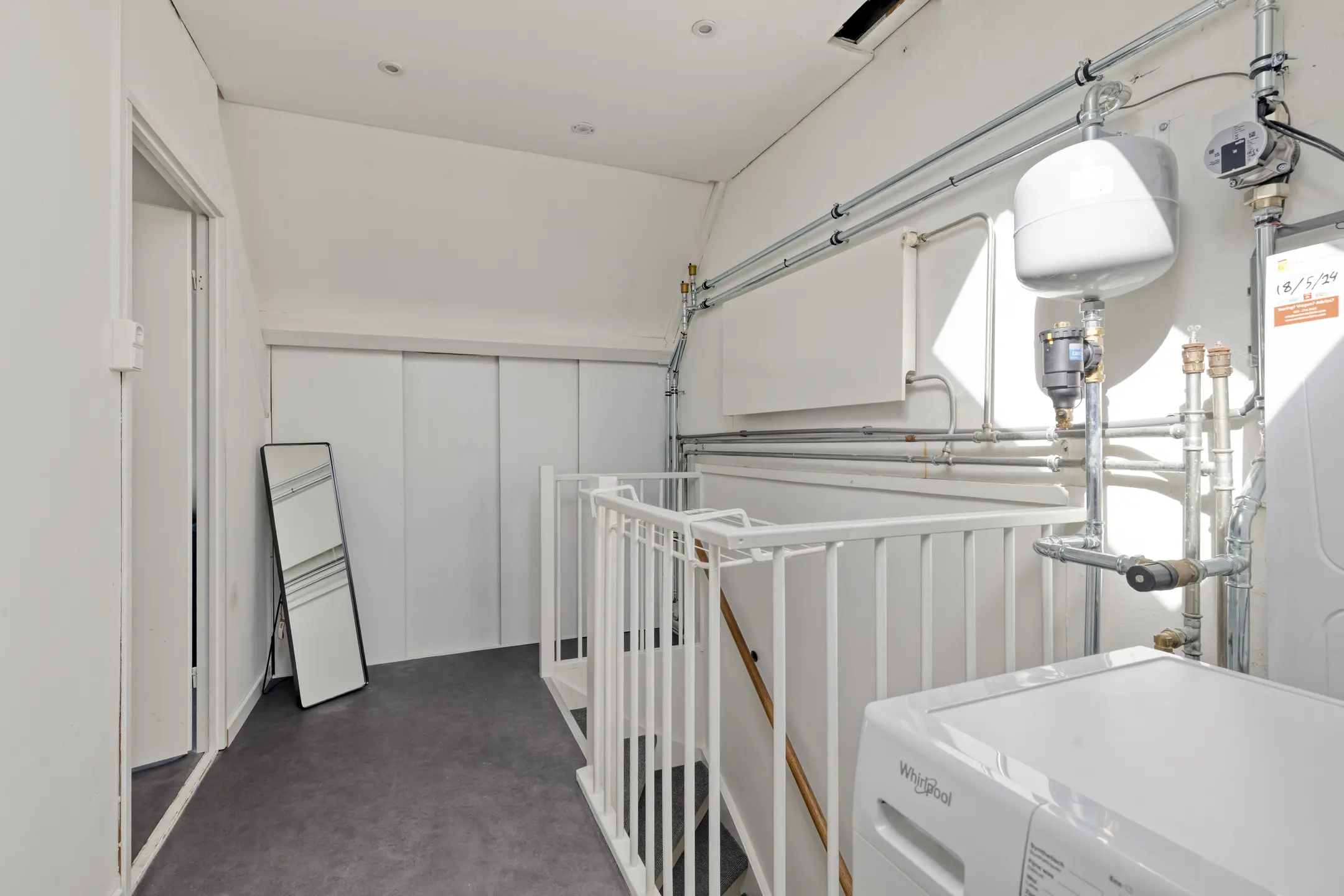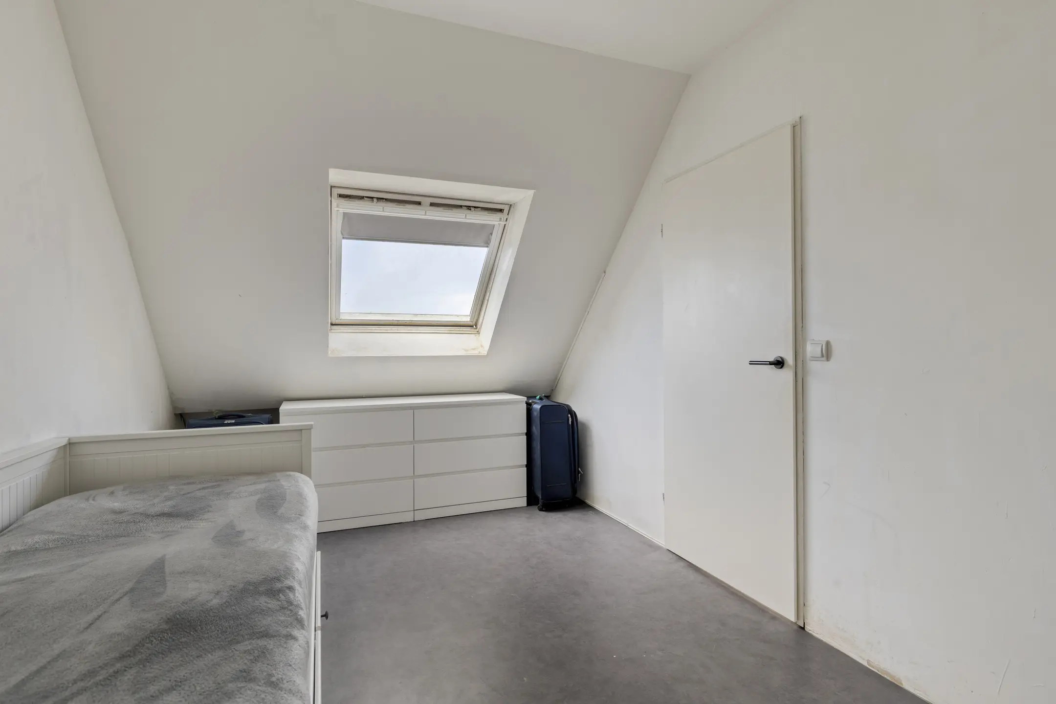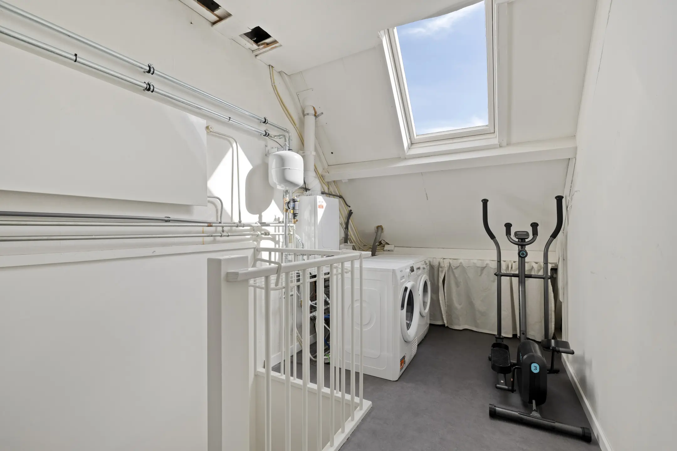 2e verdieping: zolder(slaap-)kamer met veluxraam, overloop met wasmachineaansluiting.