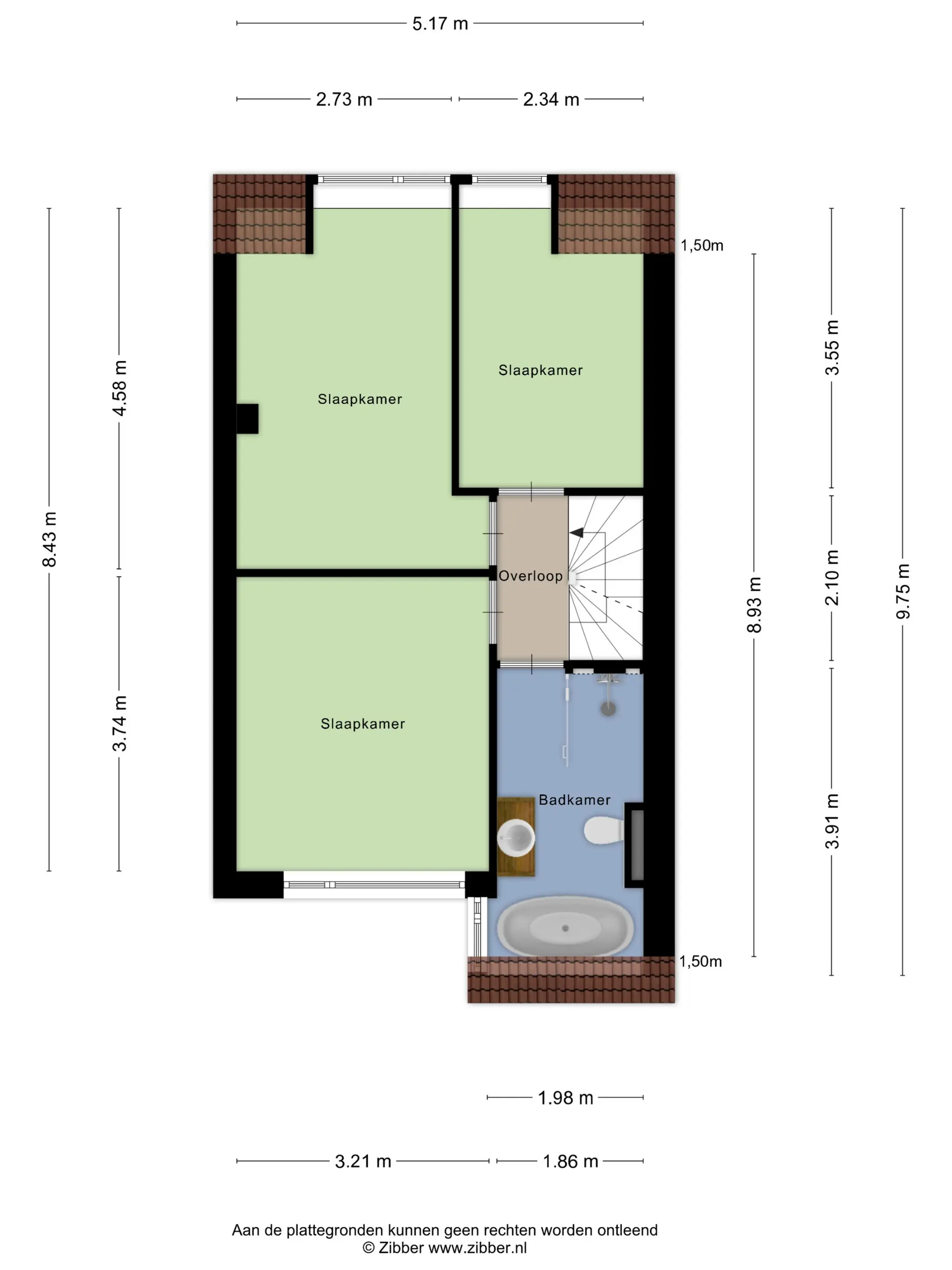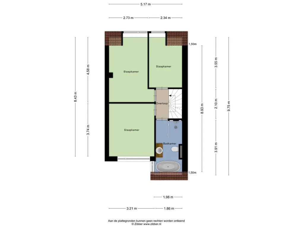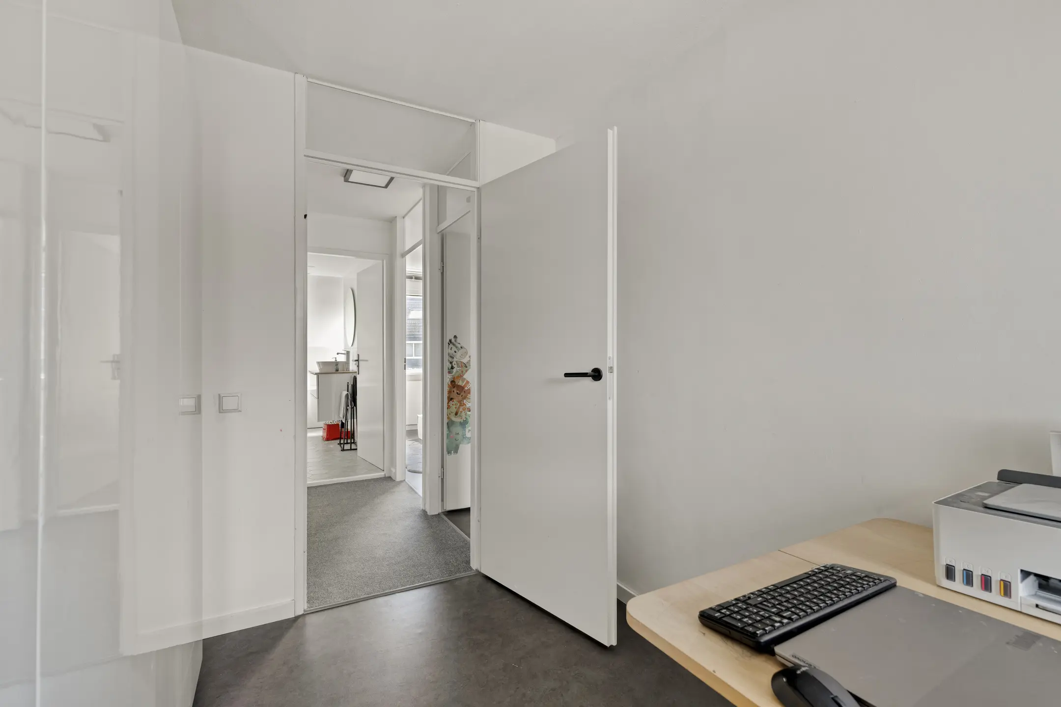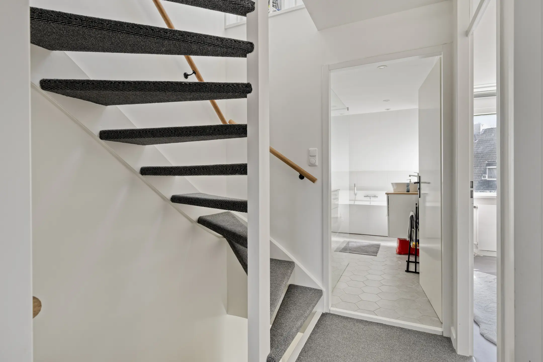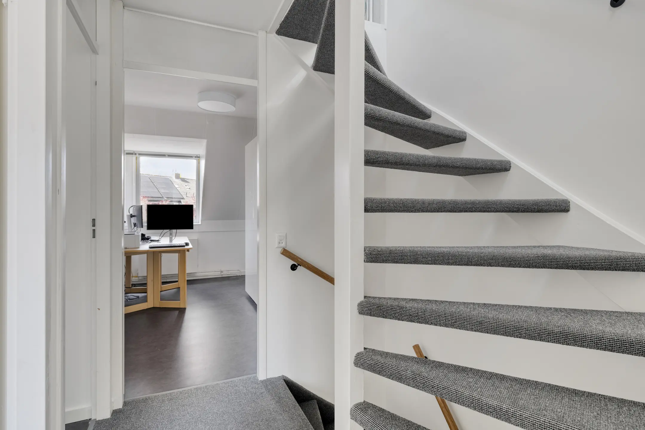 2e verdieping: zolder(slaap-)kamer met veluxraam, overloop met wasmachineaansluiting.