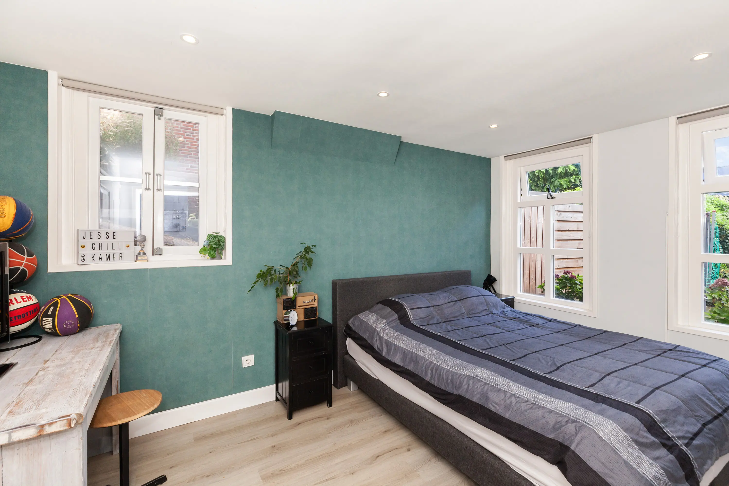 Souterrain: Entree via de woning of via de achterzijde van de woning, ruime hal, slaapkamer met berging en inloopkast. Badkamer met dubbele wastafel en ligbad, wasruimte, CV-opstelling en toilet. Het souterrain is goed aan te passen naar wens, bijv.; kantoor/werkruimte, extra kamers, keuken, enz.