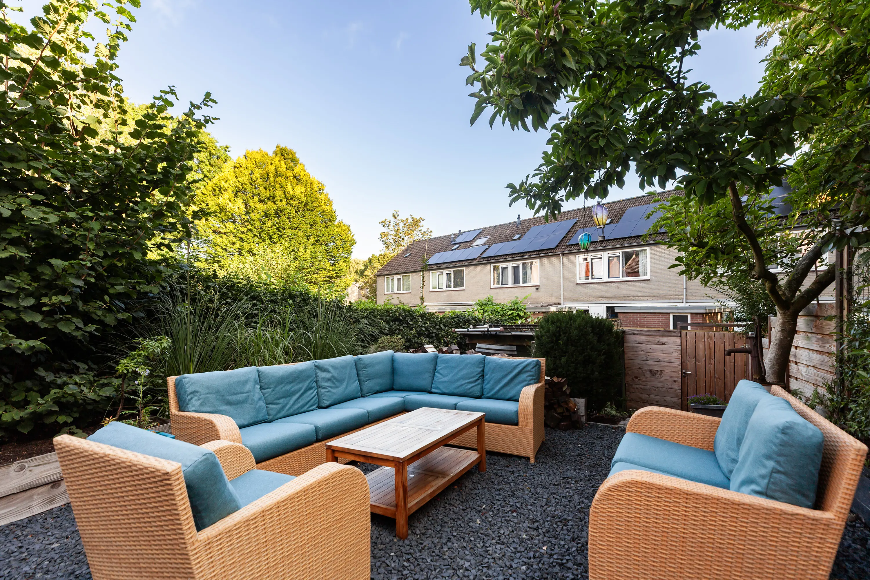 De ligging van de tuin is Noord waardoor je in de zomer kan kiezen tussen schaduw of lekker in de zon op het terras.