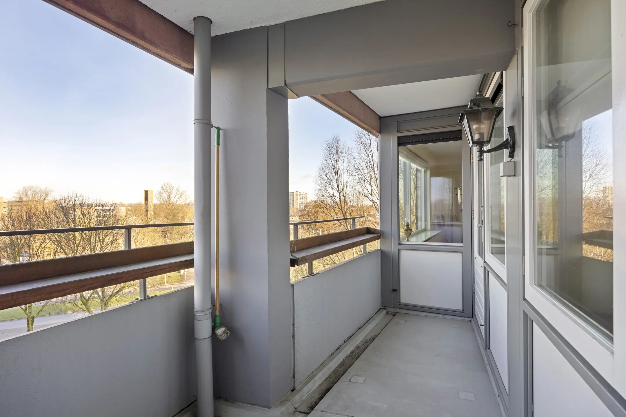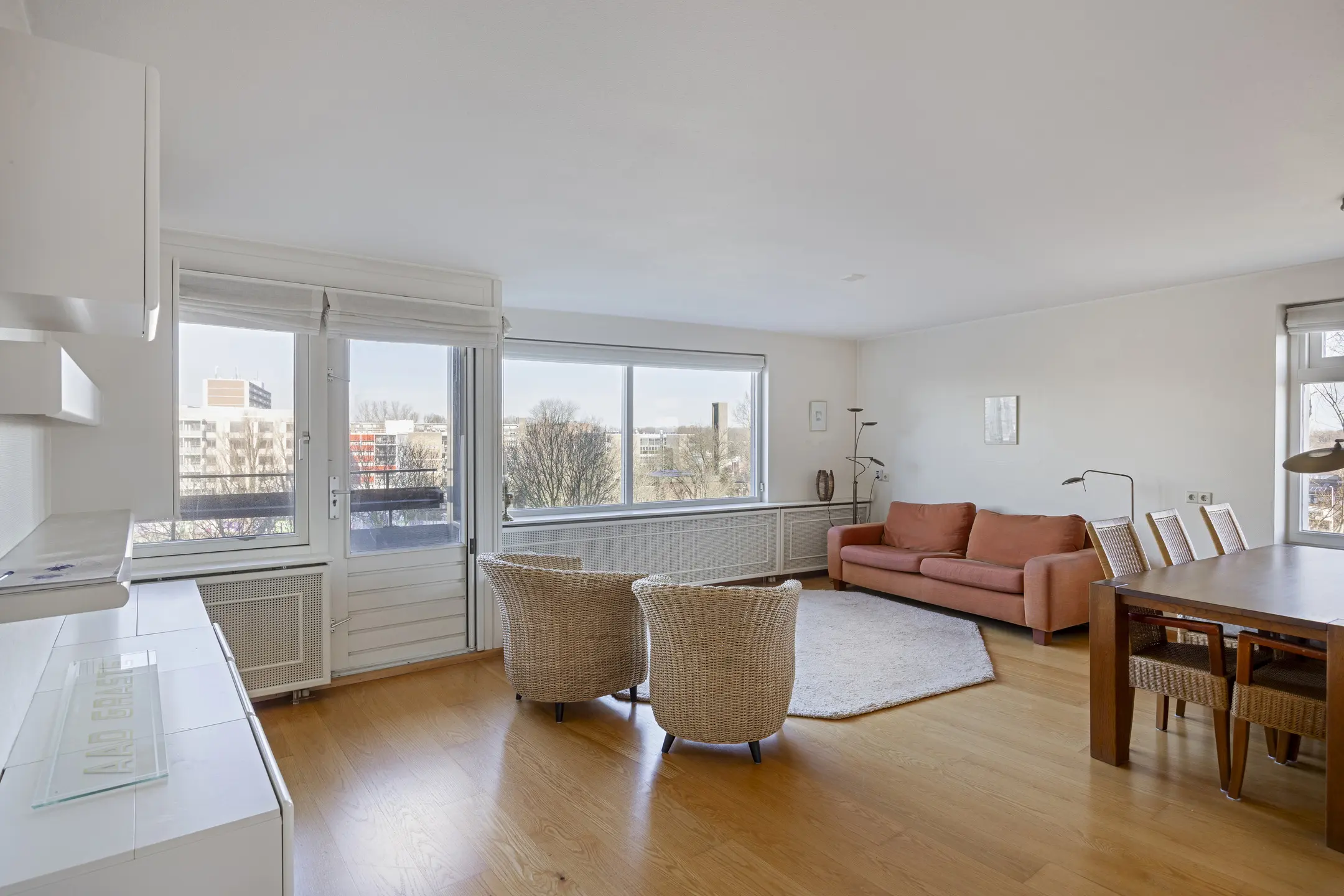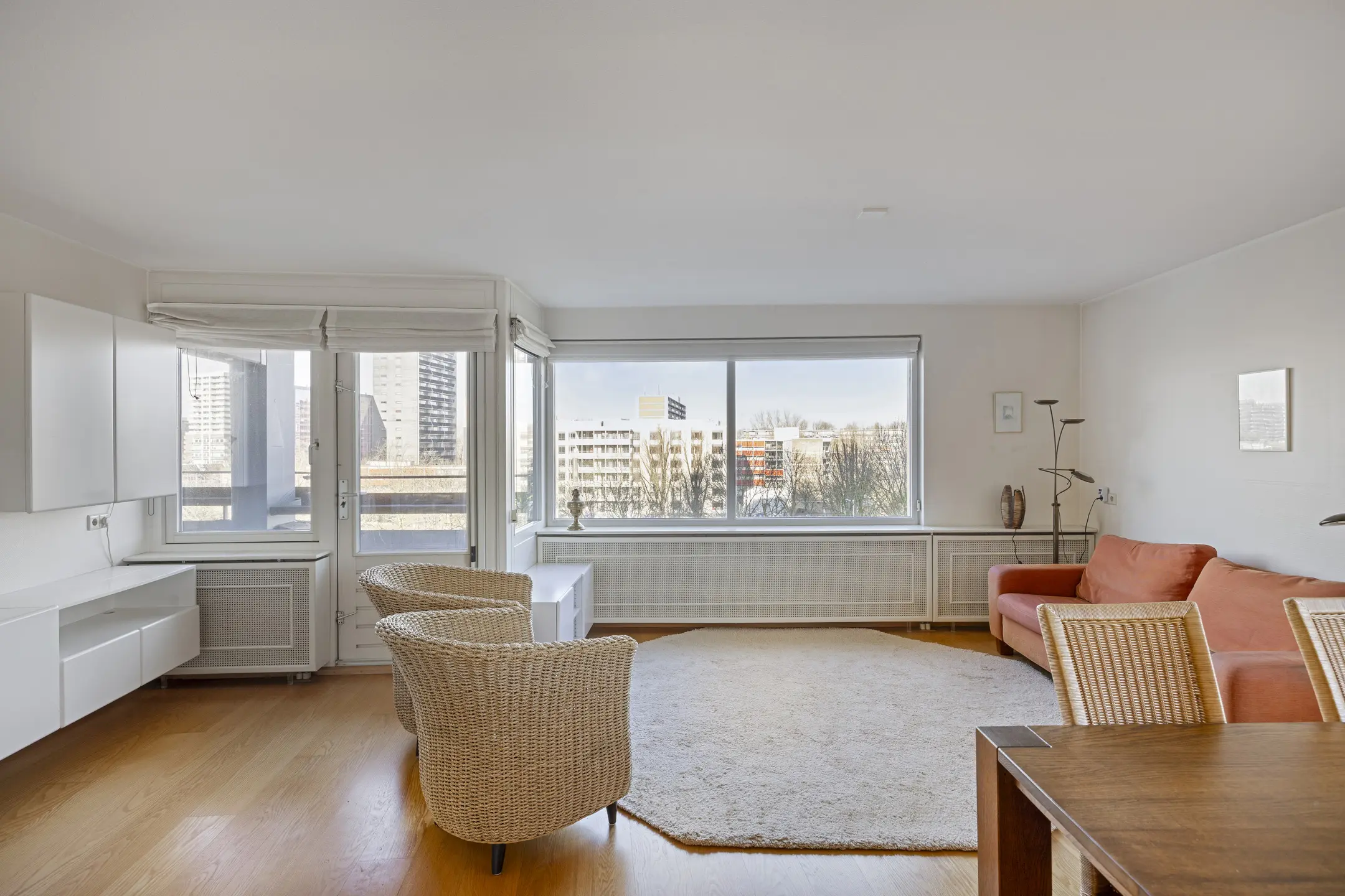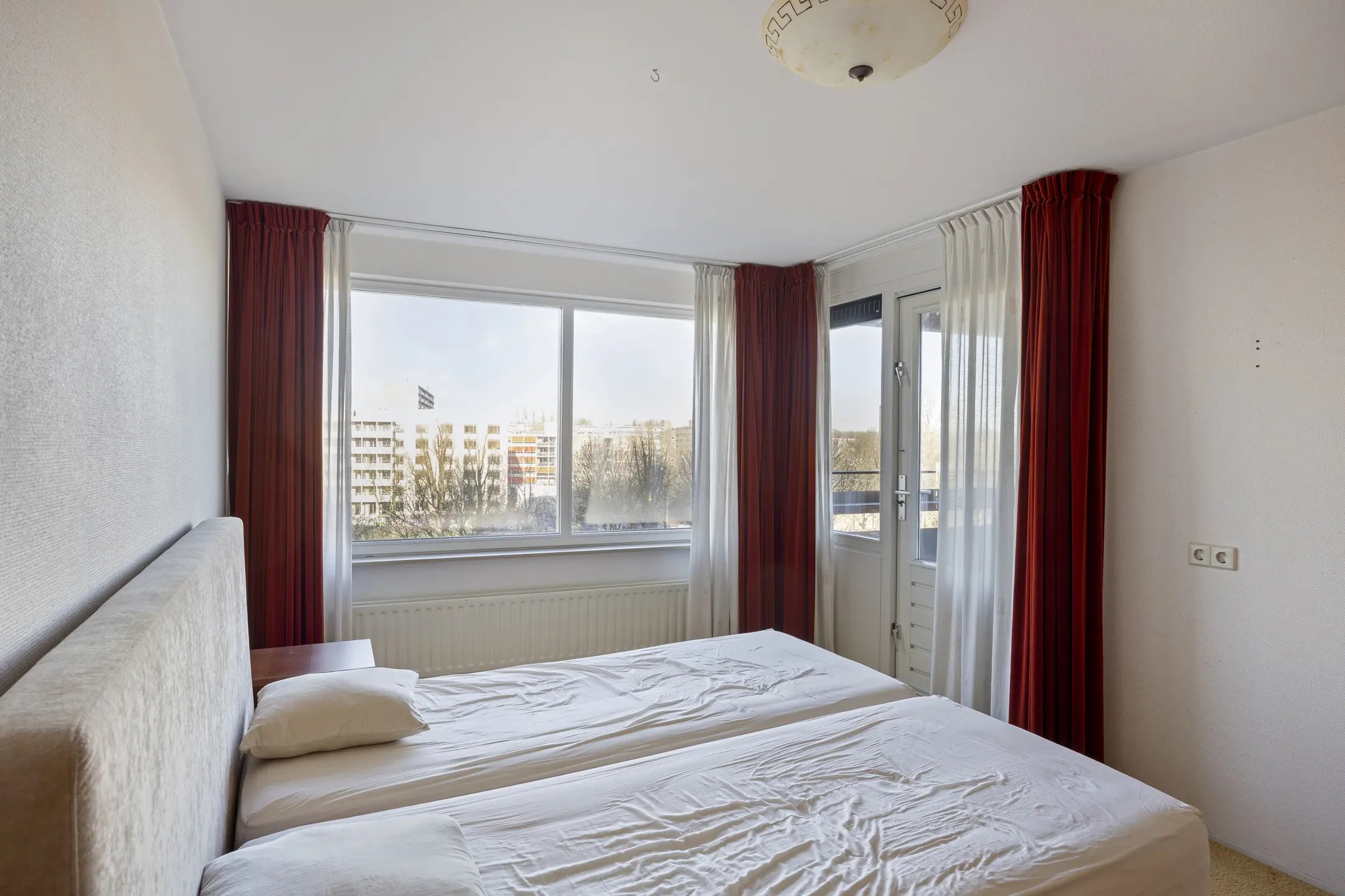Het appartement beschikt over een prettige en lichte woonkamer met toegang tot het balkon-terras, waar je heerlijk kunt genieten van de buitenlucht en het uitzicht. De woning telt twee slaapkamers en is daarmee geschikt voor stellen, kleine gezinnen of thuiswerkers. Dankzij de ligging op de vijfde verdieping ervaar je veel rust en privacy.