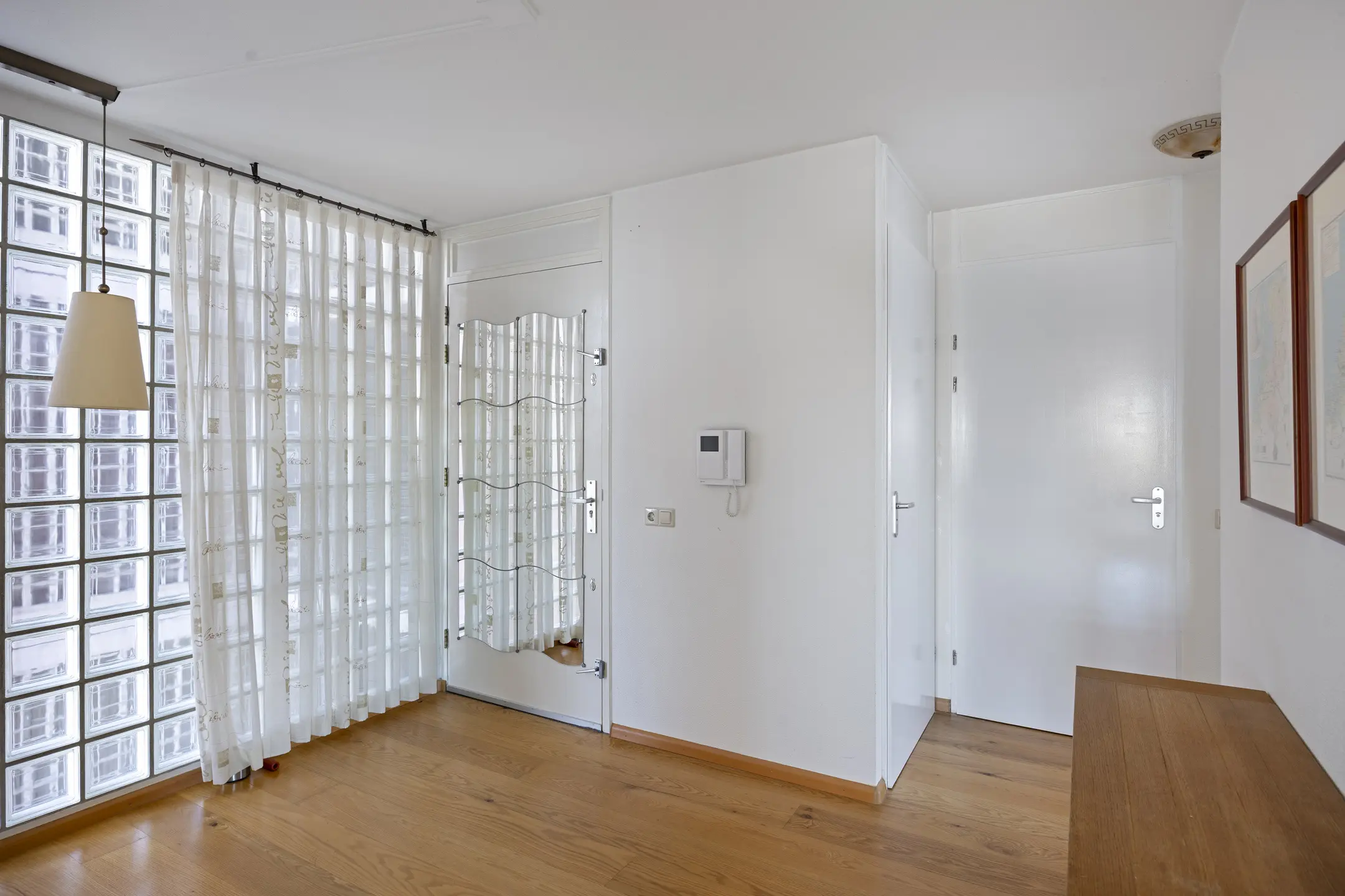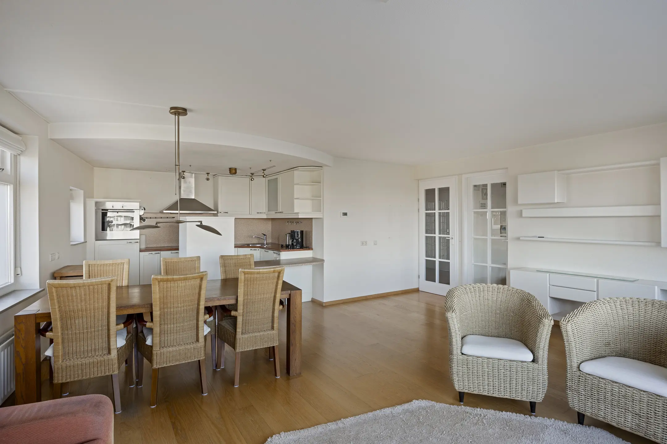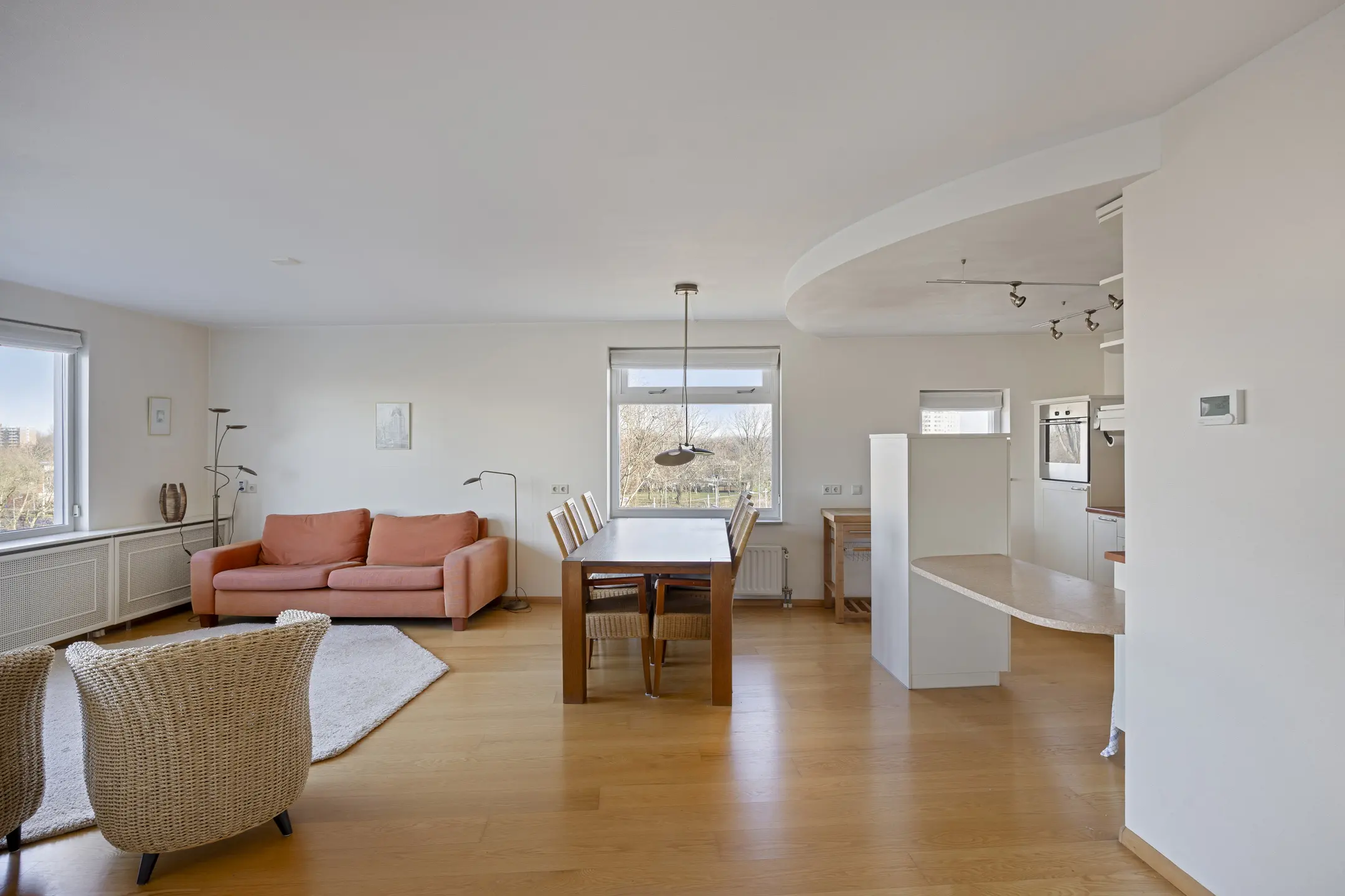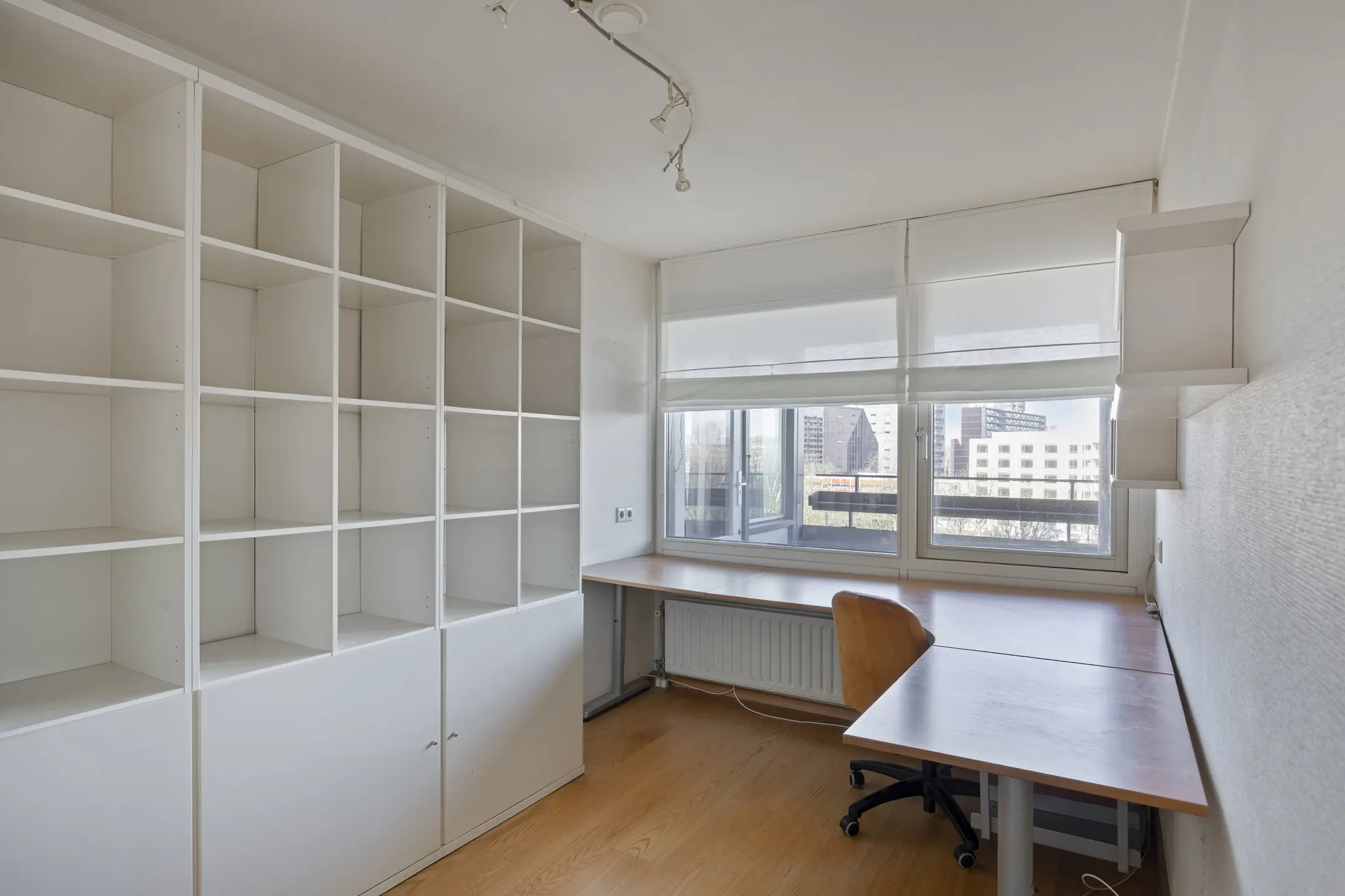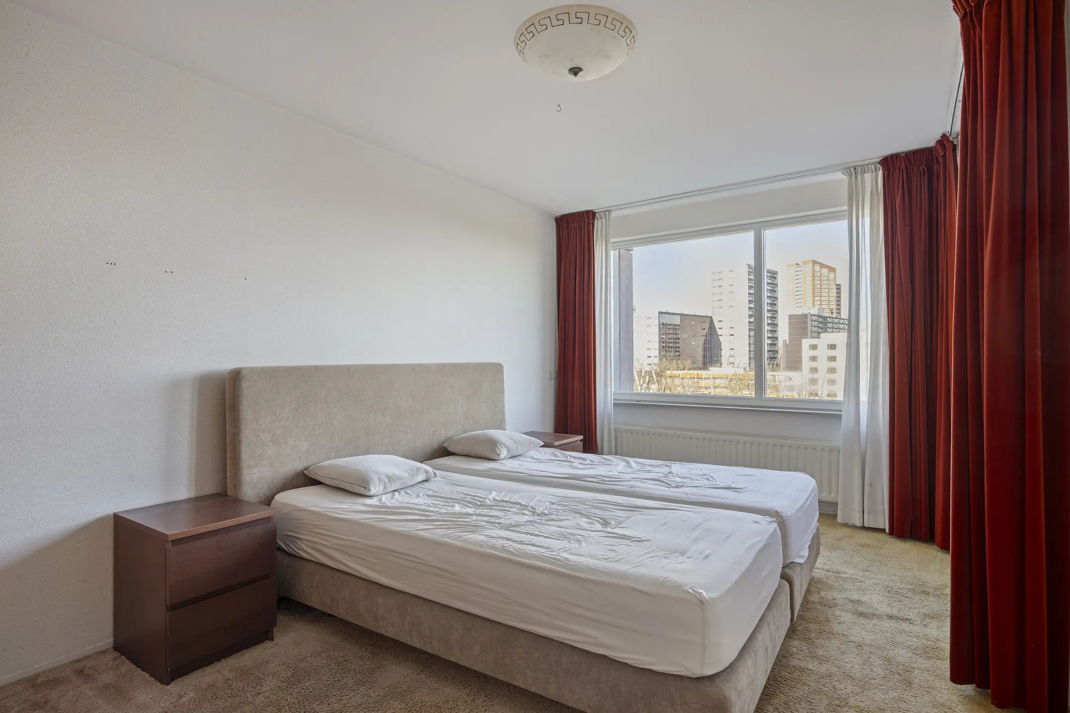 Het appartement beschikt over een prettige en lichte woonkamer met toegang tot het balkon-terras, waar je heerlijk kunt genieten van de buitenlucht en het uitzicht. De woning telt twee slaapkamers en is daarmee geschikt voor stellen, kleine gezinnen of thuiswerkers. Dankzij de ligging op de vijfde verdieping ervaar je veel rust en privacy.