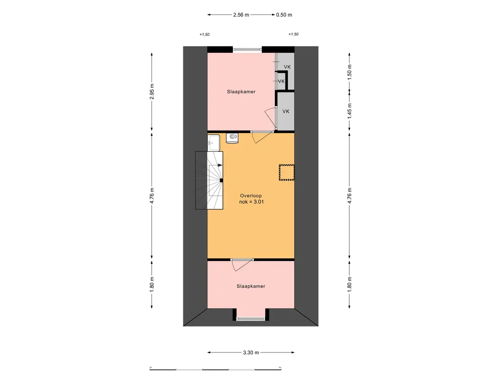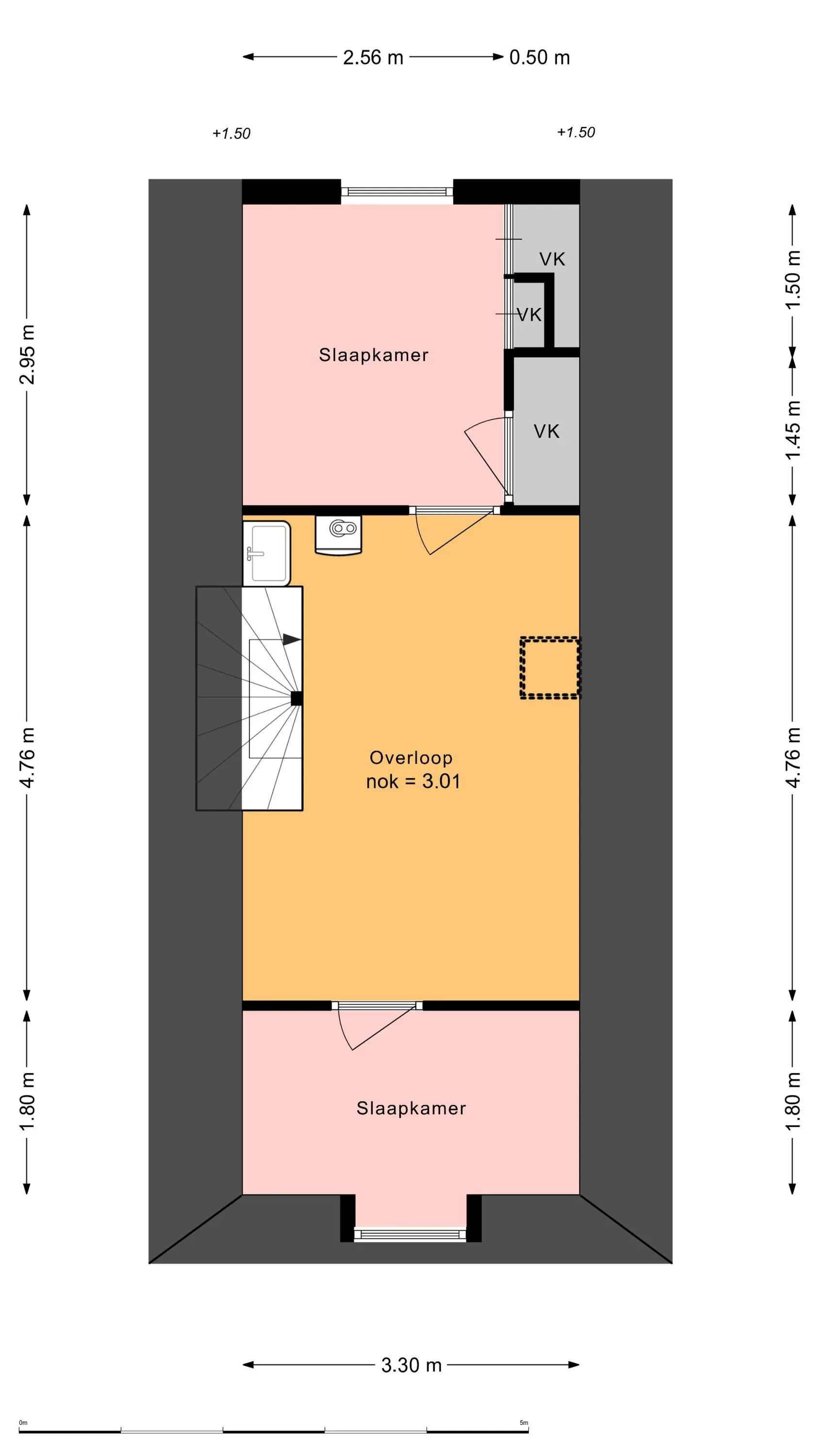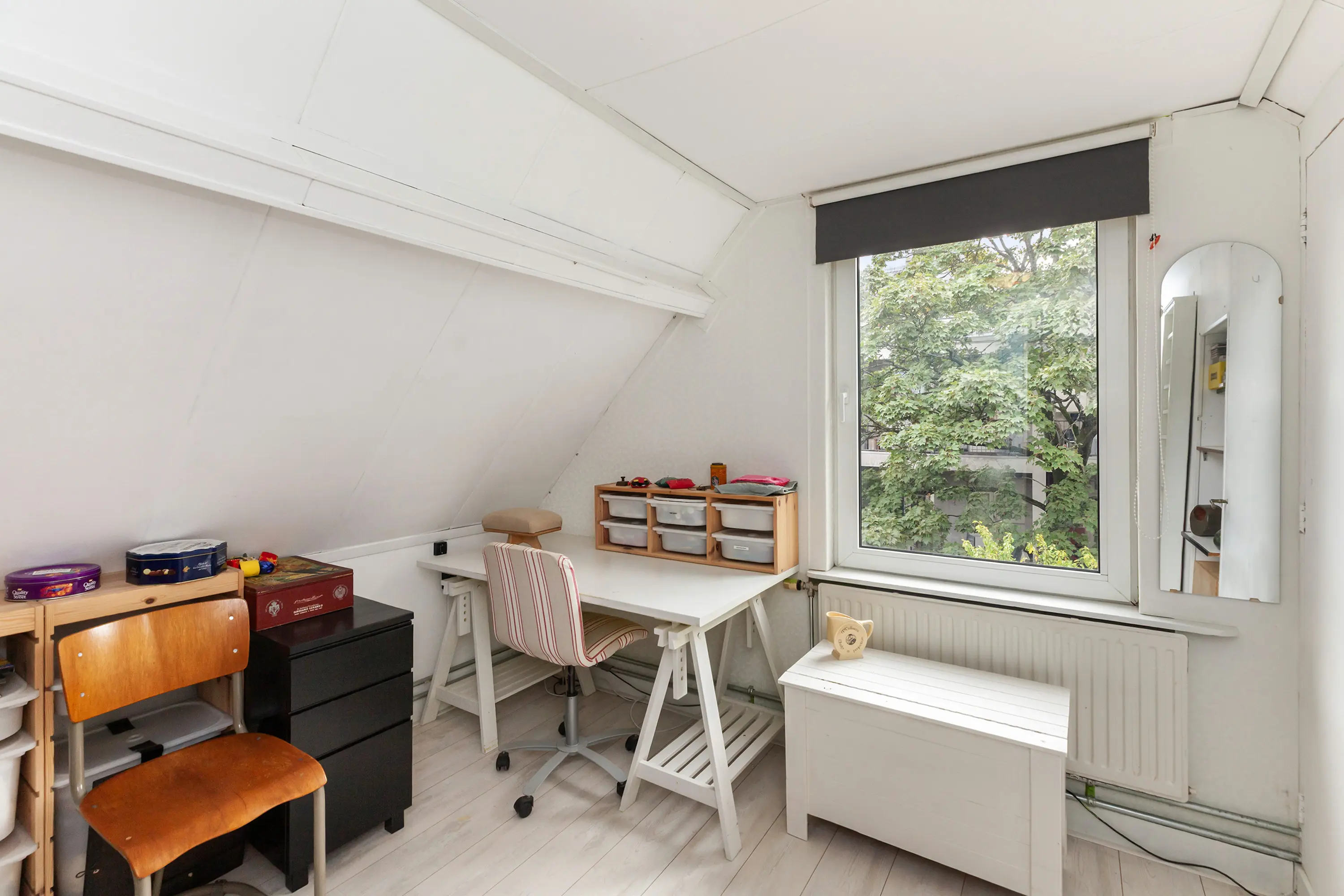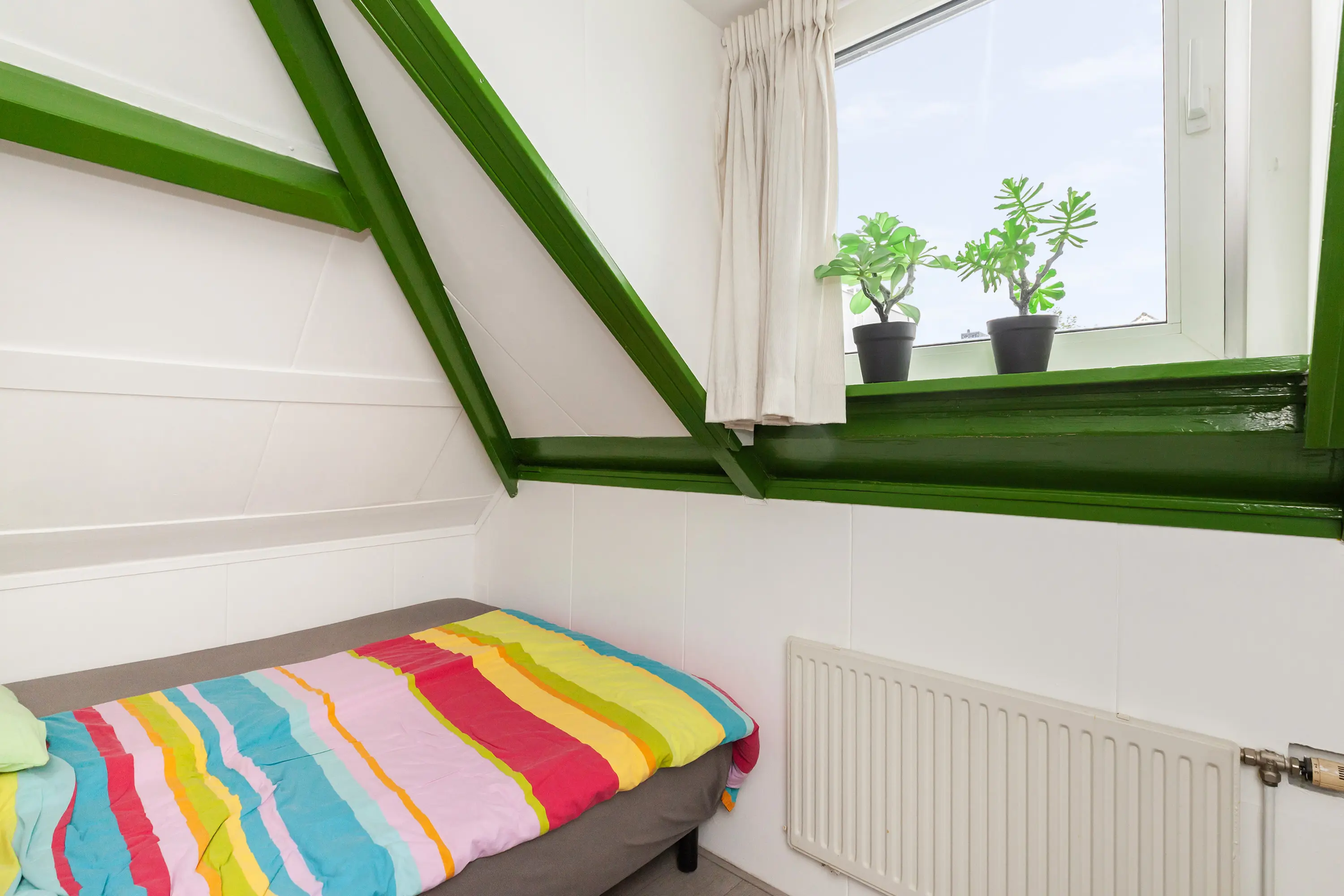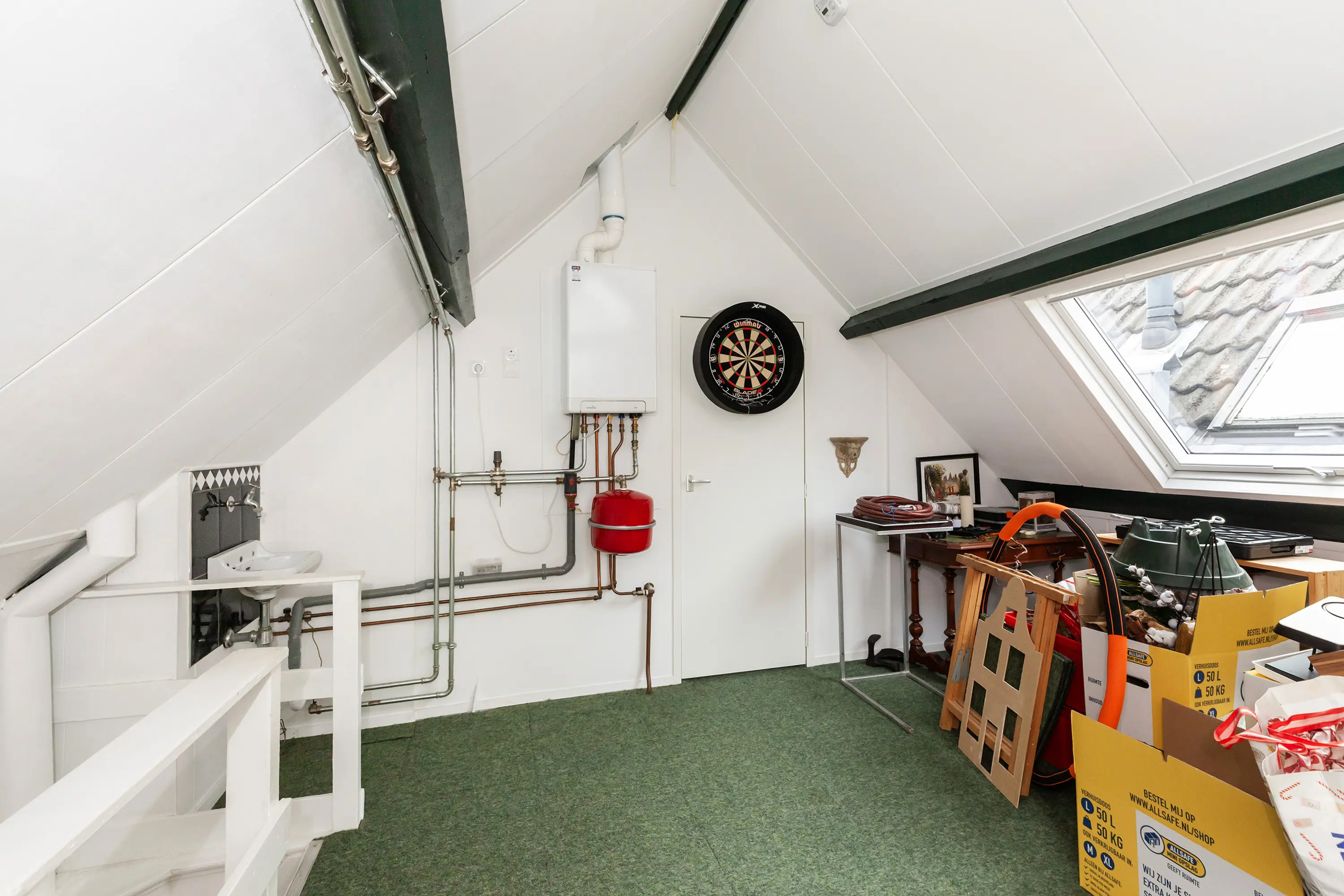 2e verd.: ruime overloop met fonteintje,0psteloplaats CV en groot dakraam, slaapkamer met kleine dakkapel, 2e slaapkamer met bergkasten.