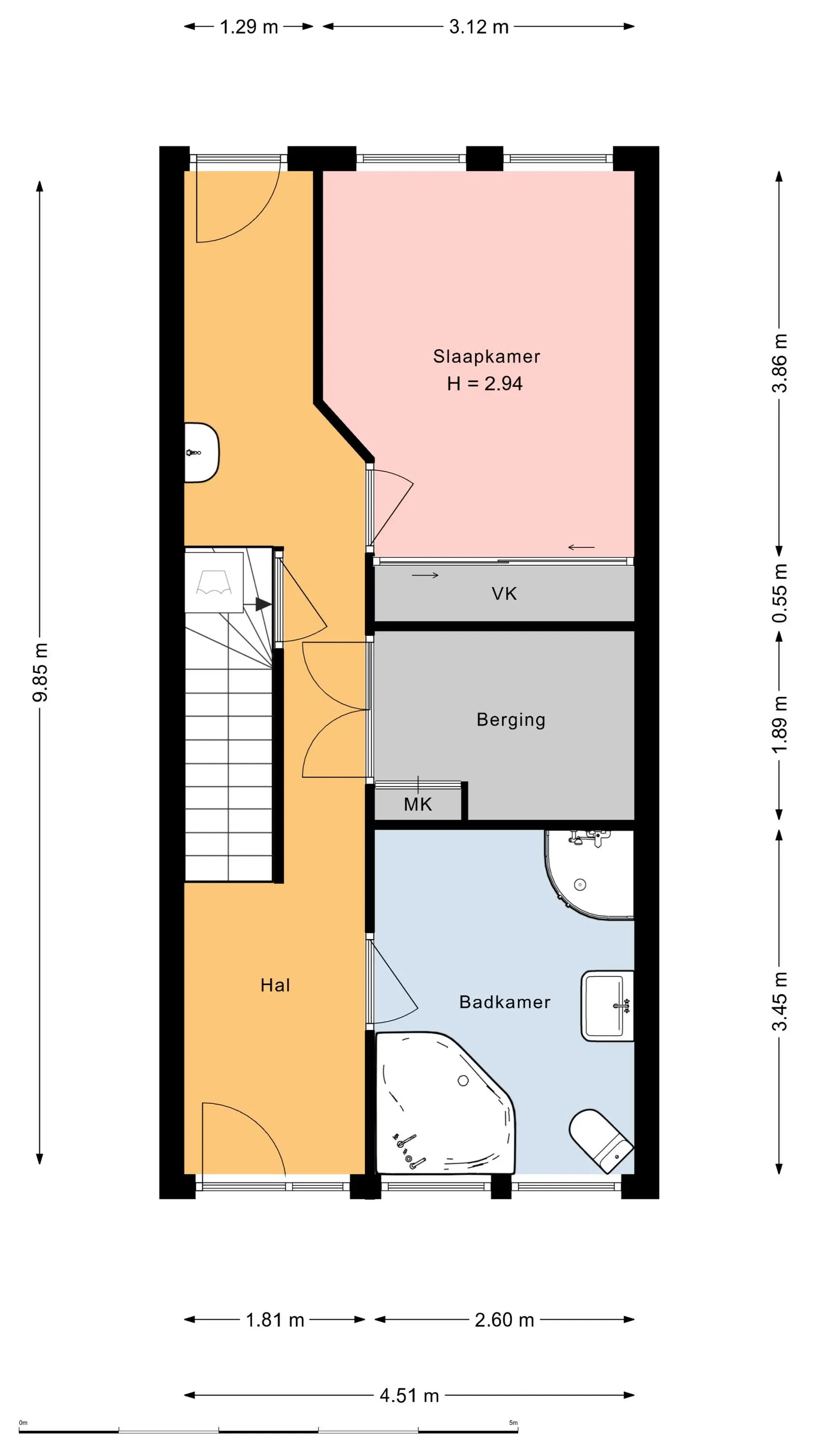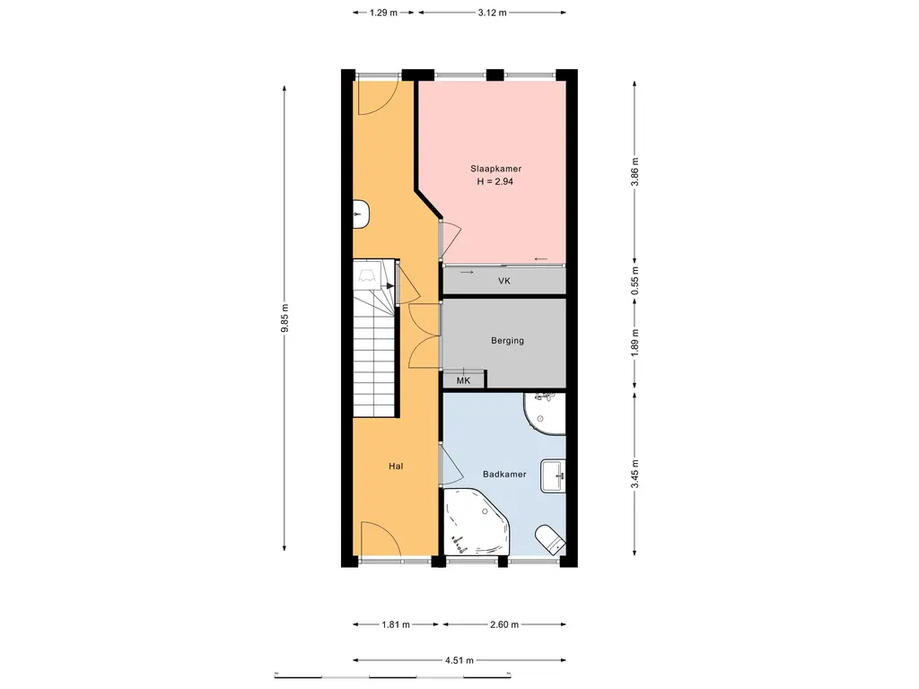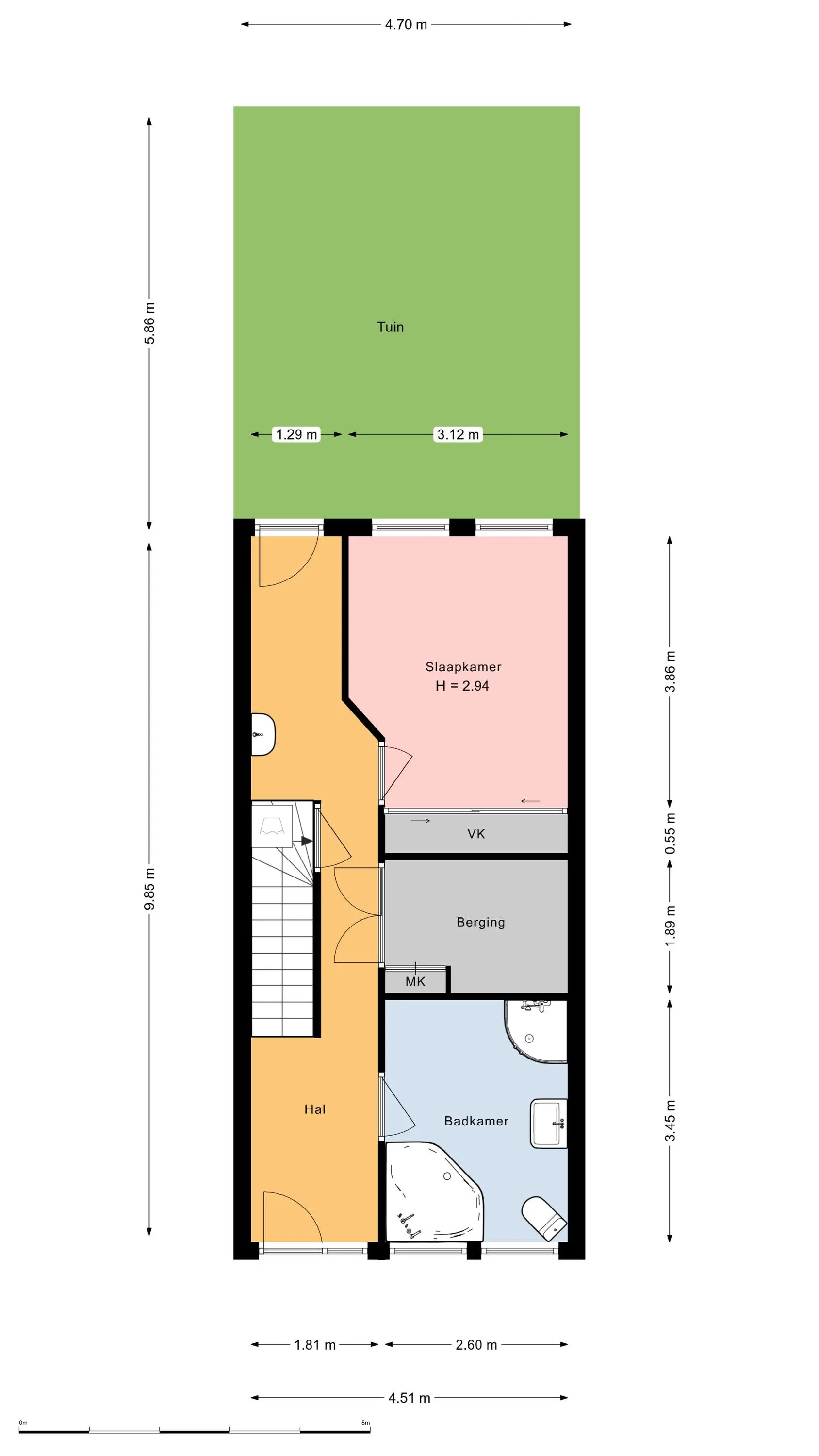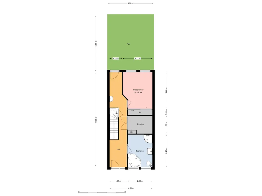Eigen entree vanaf straatzijde, vestibule/hal met garderobe, ruime badkamer met hoekbad, douchecabine, wastafel en toilet, inpandige berging met o.a. meterkast, grote slaapkamer aan tuinzijde met laminaatvloer en kastenwand, aparte wasruimte met deur naar tuin.